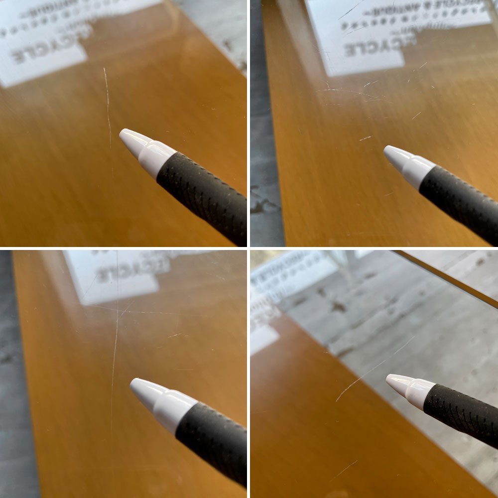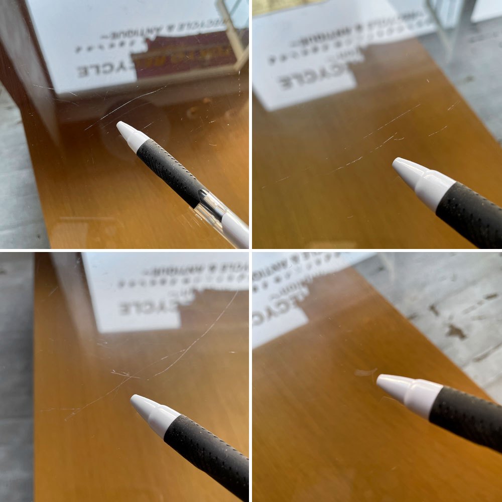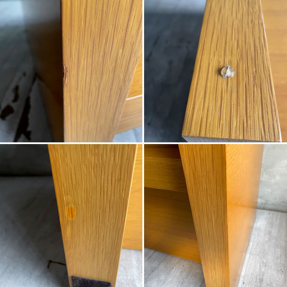 使用に伴う傷や軽微な落ちない汚れが見受けられます。また、ガラス天板にチップと多数の線傷が見られ、クッション材の一部に傷が見られますが、使用に問題となるようなダメージなどではなくこれからも実用頂けるコンディションを保っております。