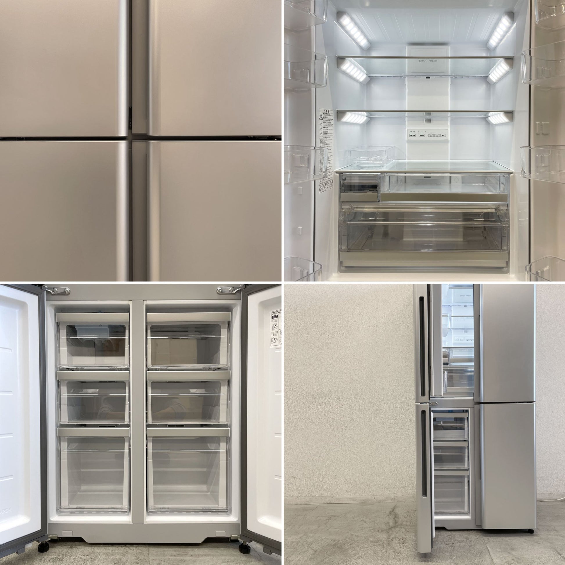 AQR-TZ42K、2021年製 スクラッチ、使用臭 外観に一見では解らない程度の浅いエクボやスクラッチ、庫内の各トレー底面に容器痕や擦れ、抽斗取手に小傷、ガラス棚板にカルキ痕等が見受けられますが、画像の通り大きく目立ったダメージは御座いません。稼働&点灯チェック済みで、若干の使用臭も運転すればあまり気にならないレベルでした。これからもまだまだお使い頂けるコンディションを保っております。コンディションの表現には幾分主観を含む為、よく画像や記述をご確認頂きご検討下さいませ。