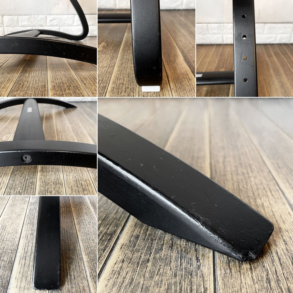 使用に伴う擦れや傷、ペイントロス、取り切れない汚れ等が散見されます。とくに背もたれのガリ傷が目立ちますが、レタッチにて修復が施されております。また、脚底の一部にわずかな木部の欠けが見受けられるとともに、金属パーツのくすみ等がございますが、ご使用に支障となるがたつきやぐらつきといったダメージはございません。やや使用感はあるものの、これからも安心して実用いただけるコンディションを保っております。