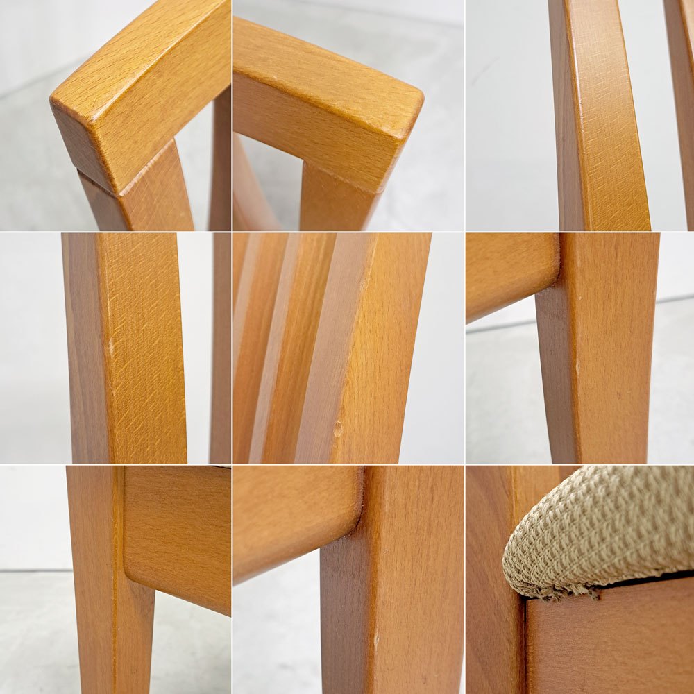 使用に伴う擦れや傷、打痕、接着痕、取り切れない汚れが全体に散見され、ファブリックには染み汚れが数箇所、極僅かな糸のほつれ、毛羽立ちが所々に見受けられます。全体的に使用感は感じられるものの、ガタつきやグラつきなど、機能を著しく損なうダメージは無く、これからも十分に実用いただけるコンディションを保っております。