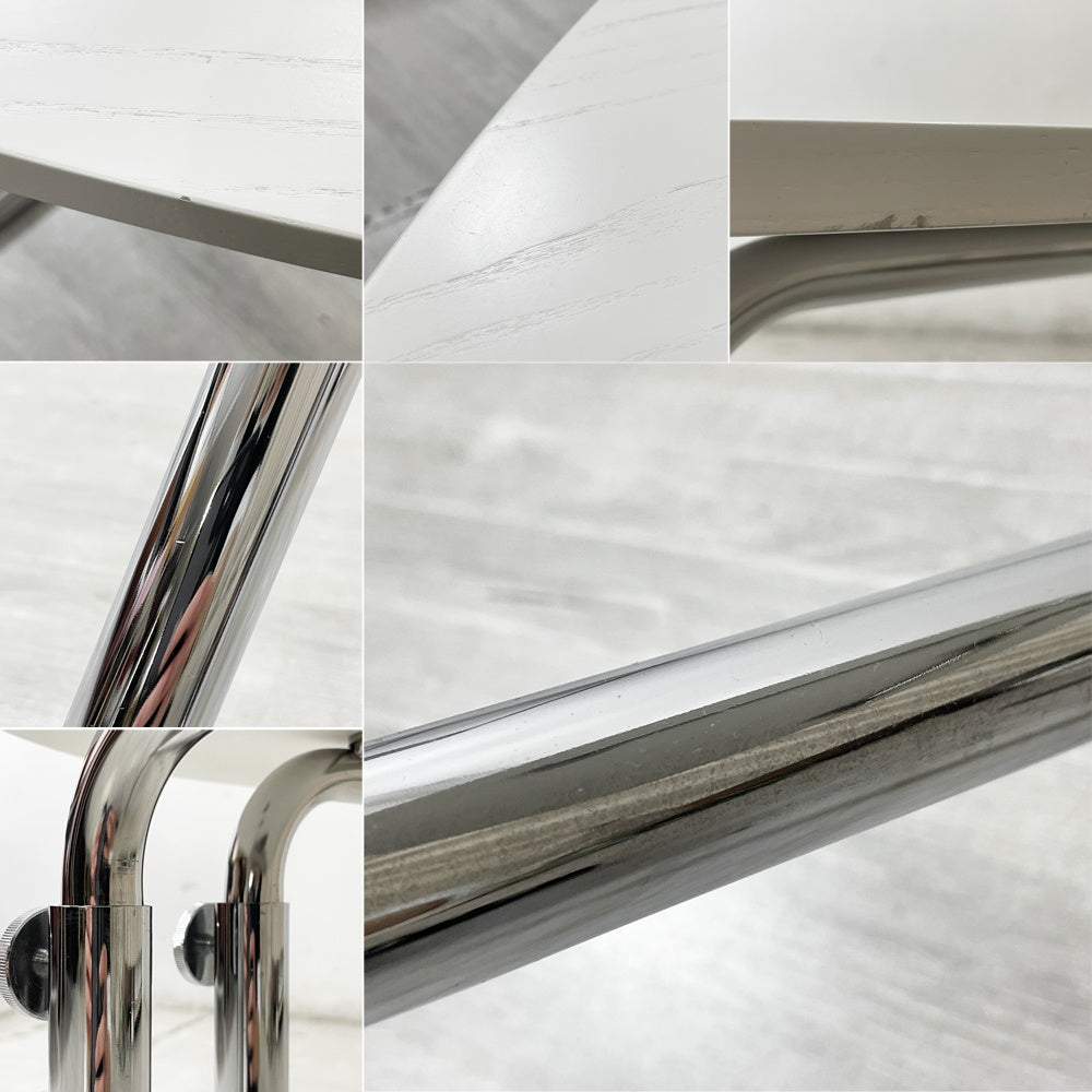 使用に伴い天板に細かな擦れや小傷、落としきれない汚れ、脚部にも傷や金属特有のくすみなどが見受けられます。目立つダメージやご使用に問題となるような不具合もございませんので、ユーズド品としては良好なコンディションを保っております。