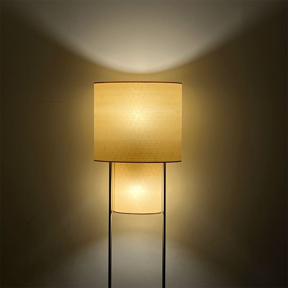薄い円筒形のシェードが重なる構造は、シンプルでありながら印象的。