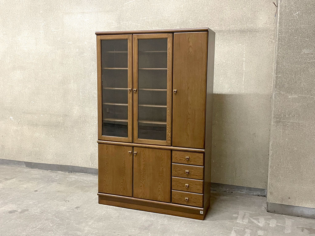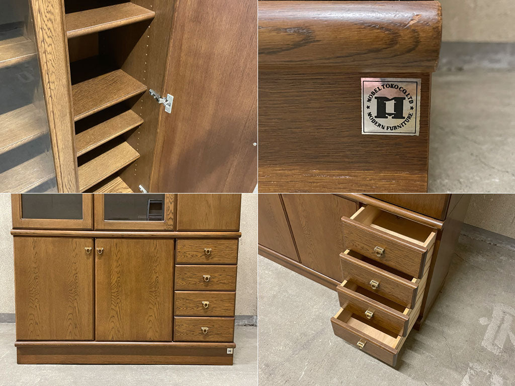 メーベルトーコー MOBEL TOKO ケント 食器棚 カップボード 飾り棚 収納家具 旭川家具 ナラ材 楢 オーク材 ダークブラウン 〓