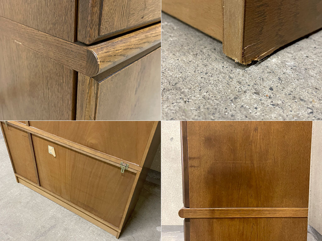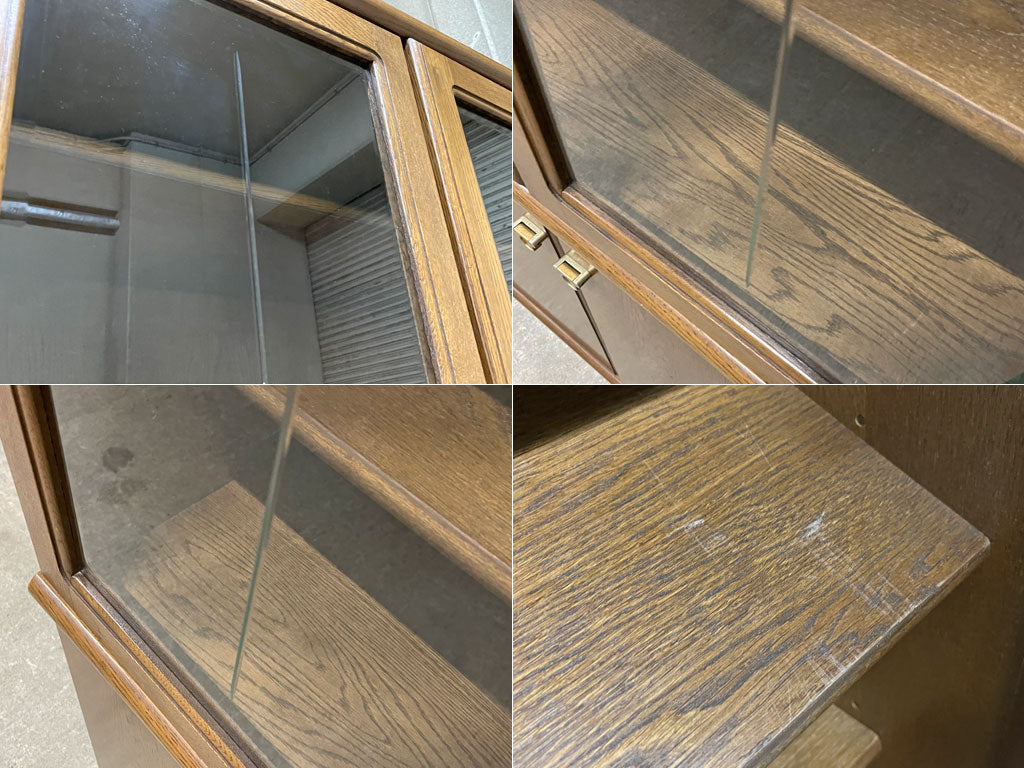 ガラスキャビネット内の棚板と下段のキャビネットの棚板にはやや使用感やスレ・傷がございます。