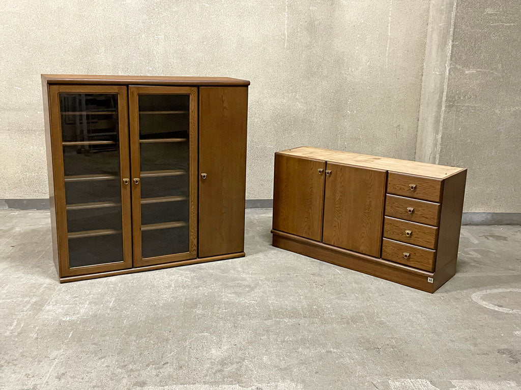 ナラ材を上品なダークブラウンカラーで統一したキャビネット。