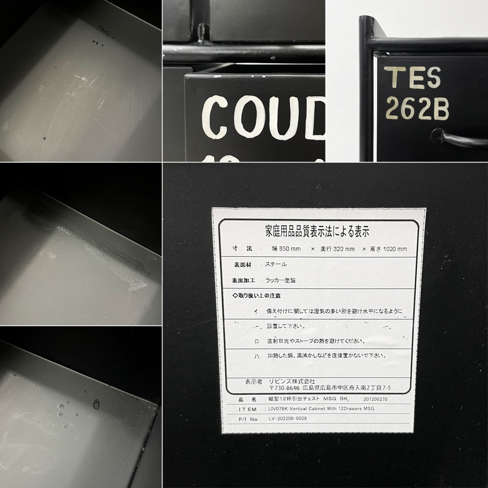 イエノワ ienowa MSG スチールチェスト 12ドロワー W85cm ブラック インダストリアル 定価56,200円 ●