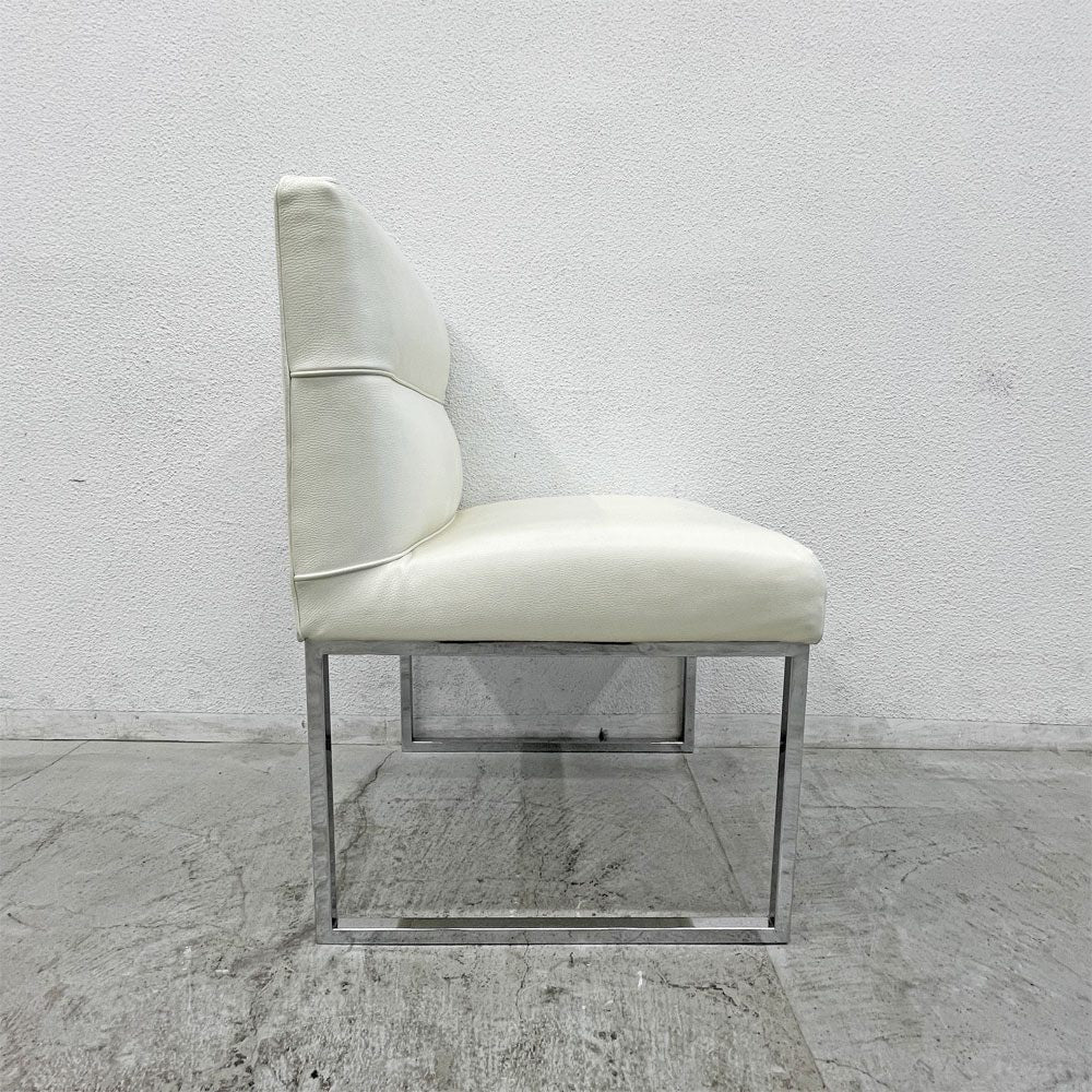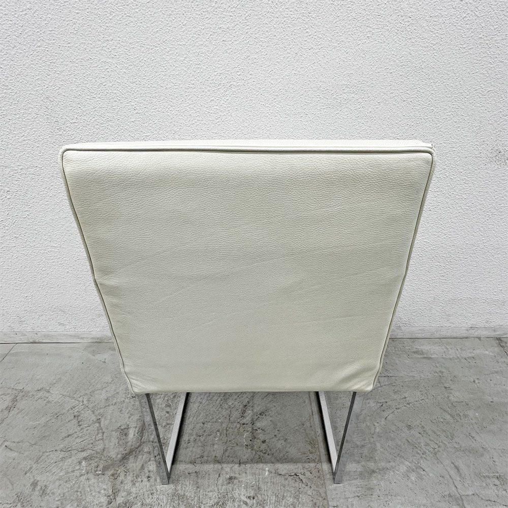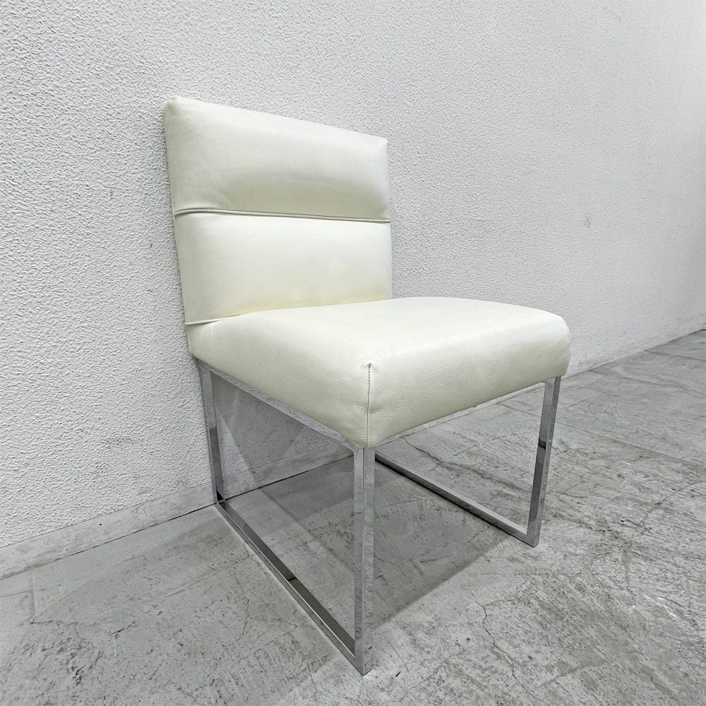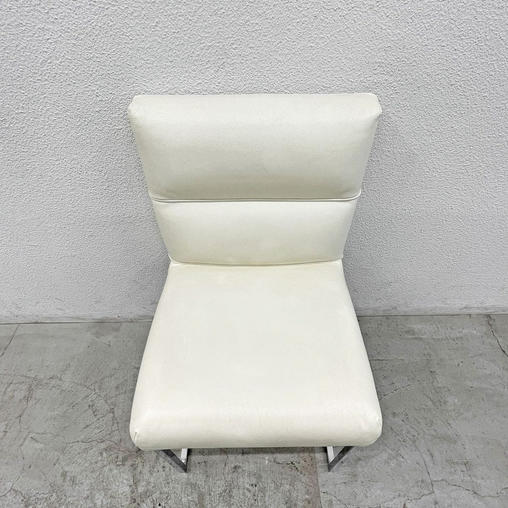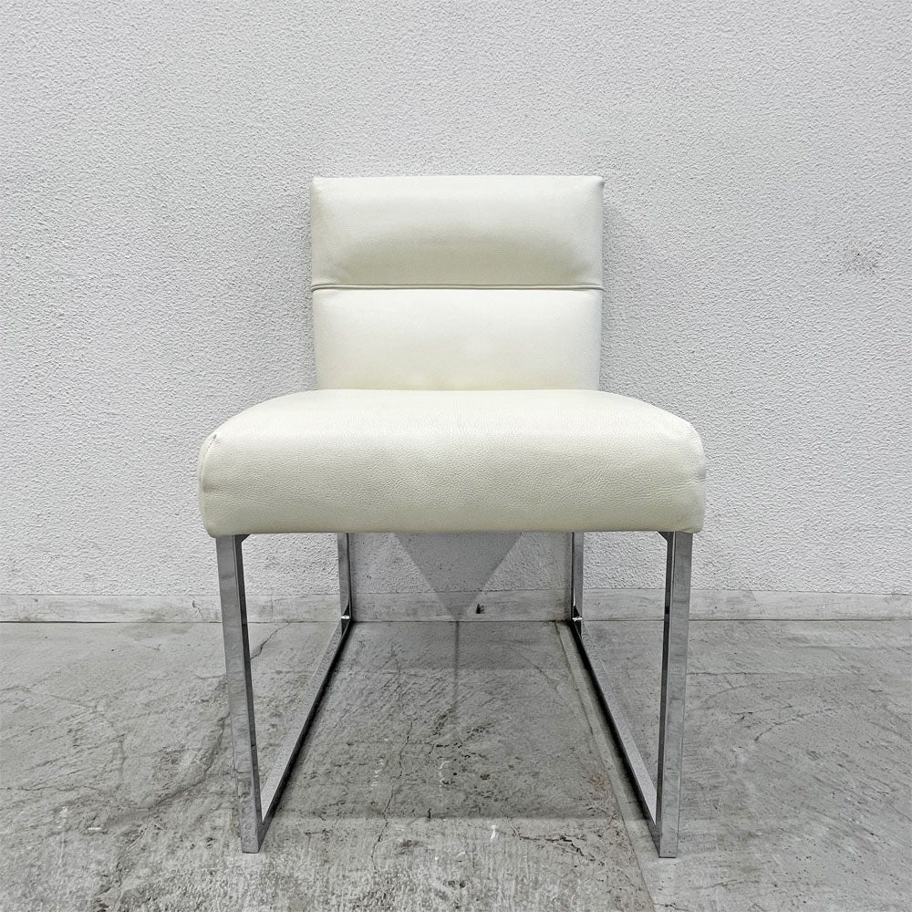 こちらはクッション性のある柔軟なシートを備えたオフホワイトの鞣革張りのダイニングチェア。