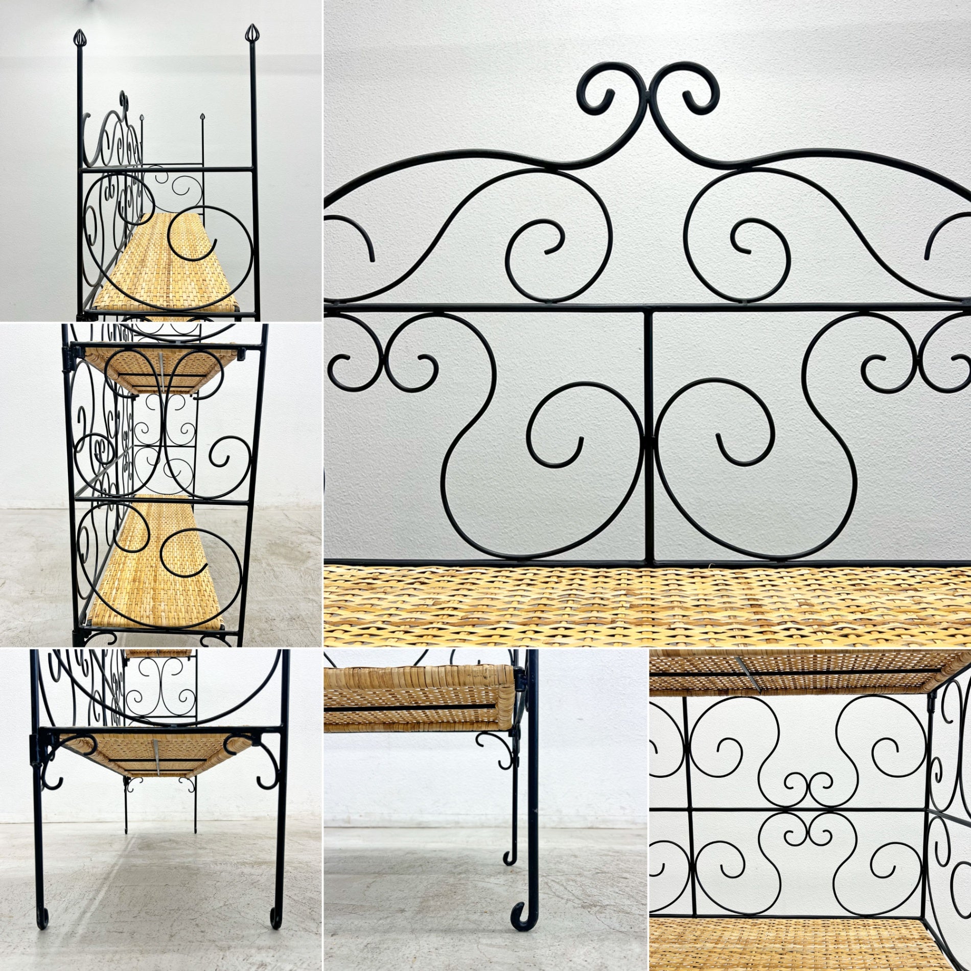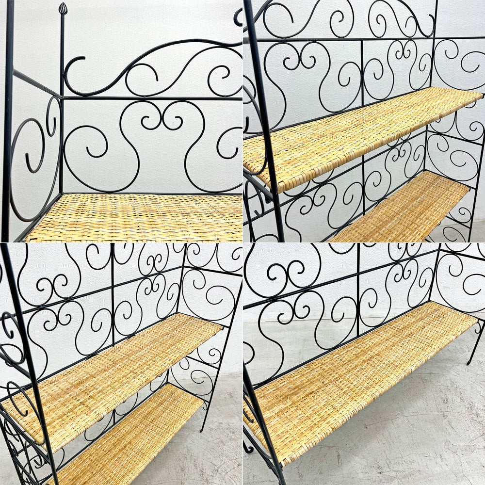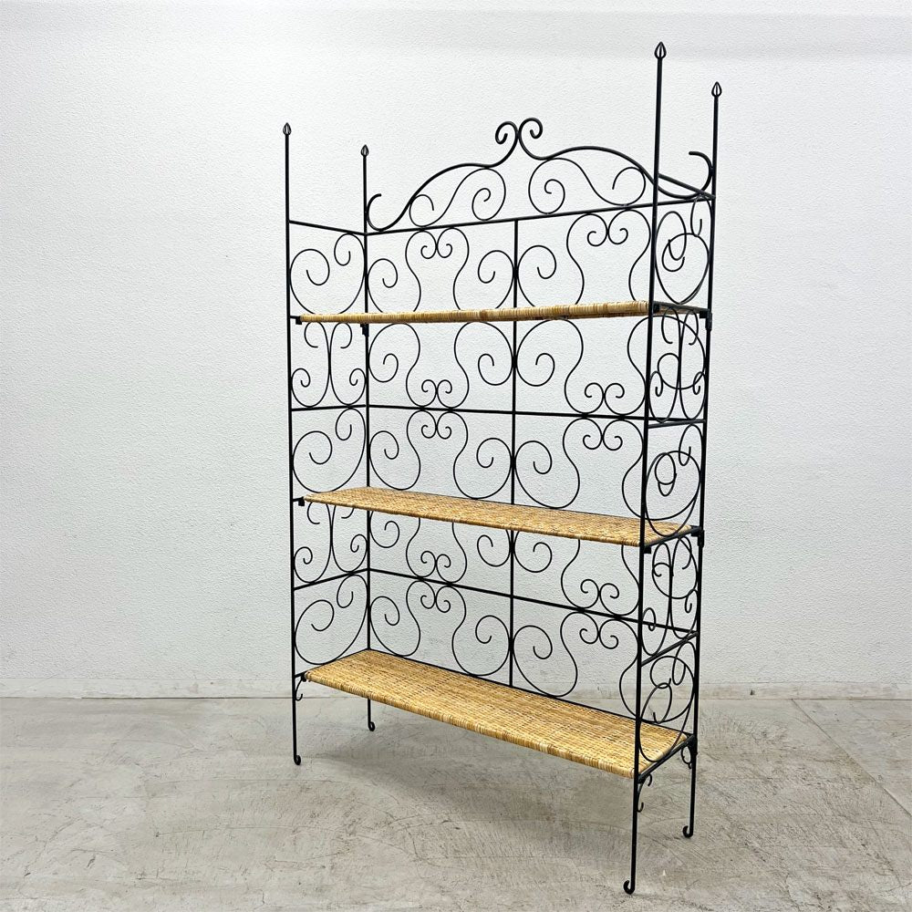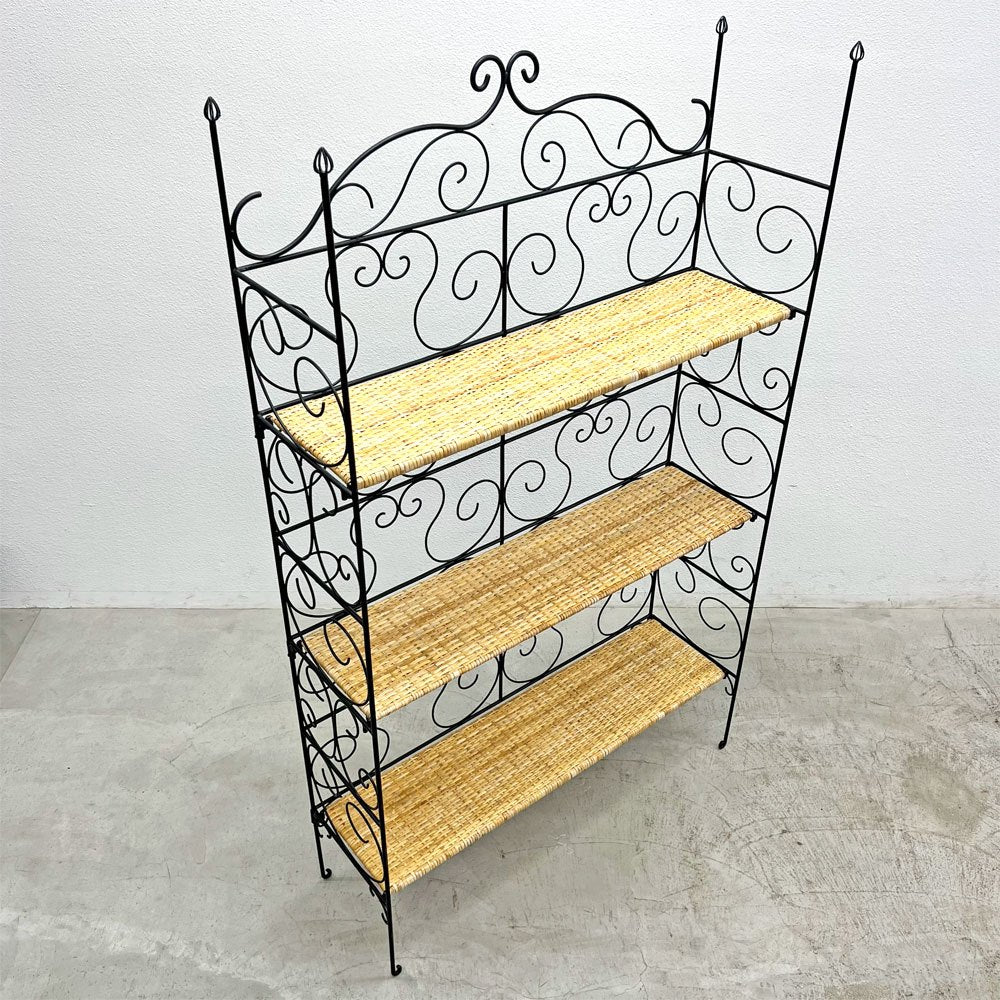 ロートアイアンxラタン クラシカルデザイン シェルフ 3段 棚板着脱可能 フォールディング 折畳 籐 アンティーク調 店舗什器 〓