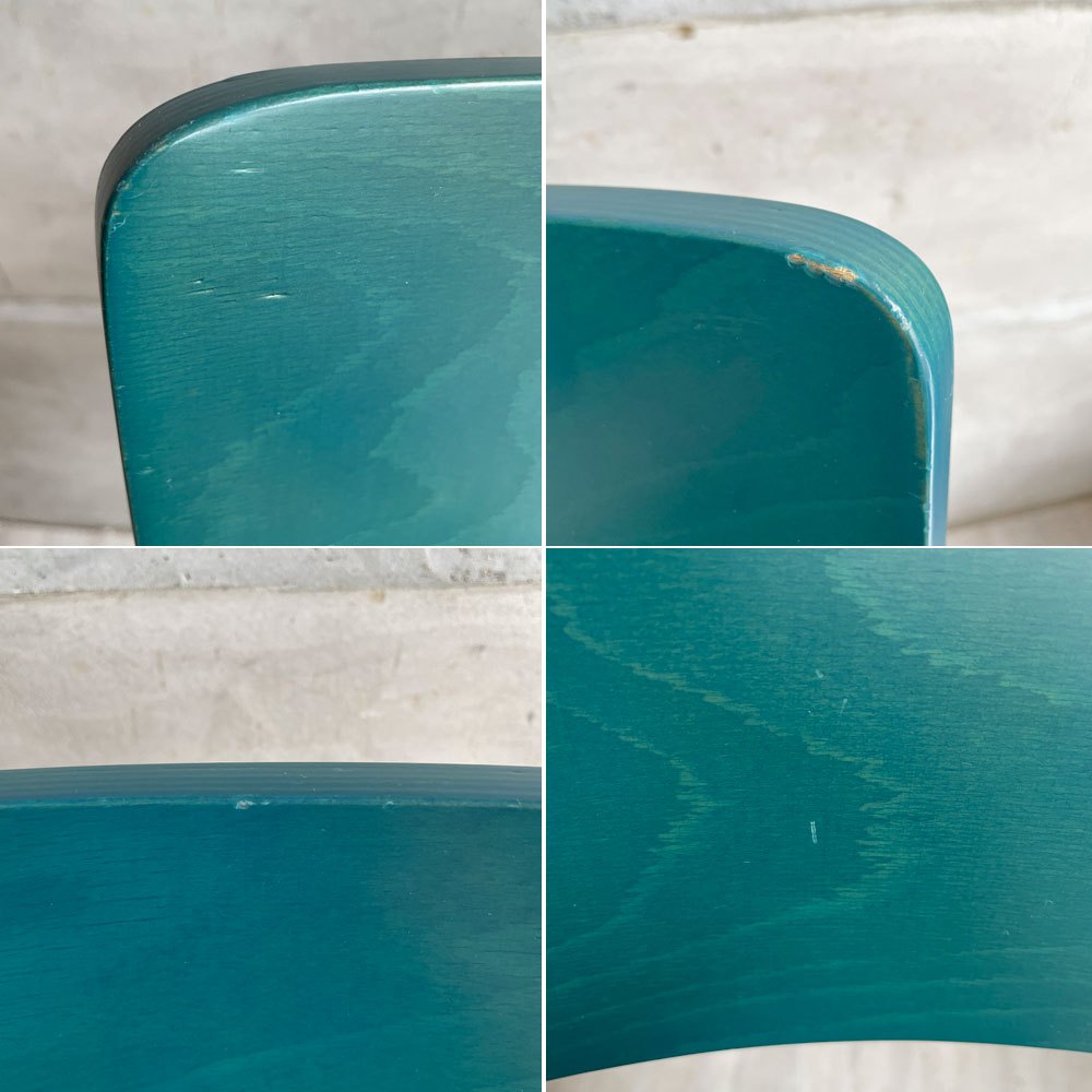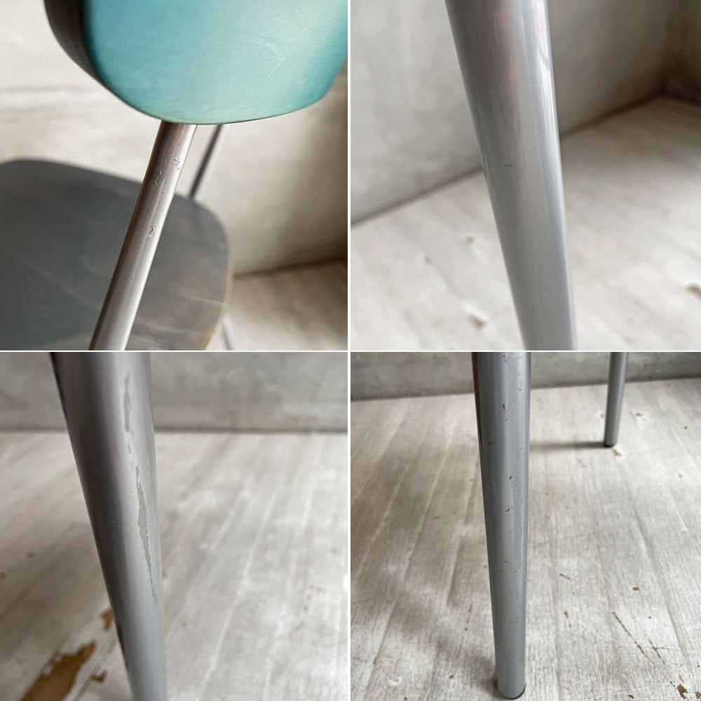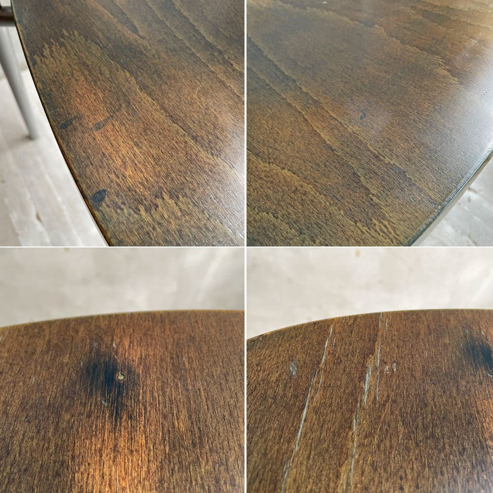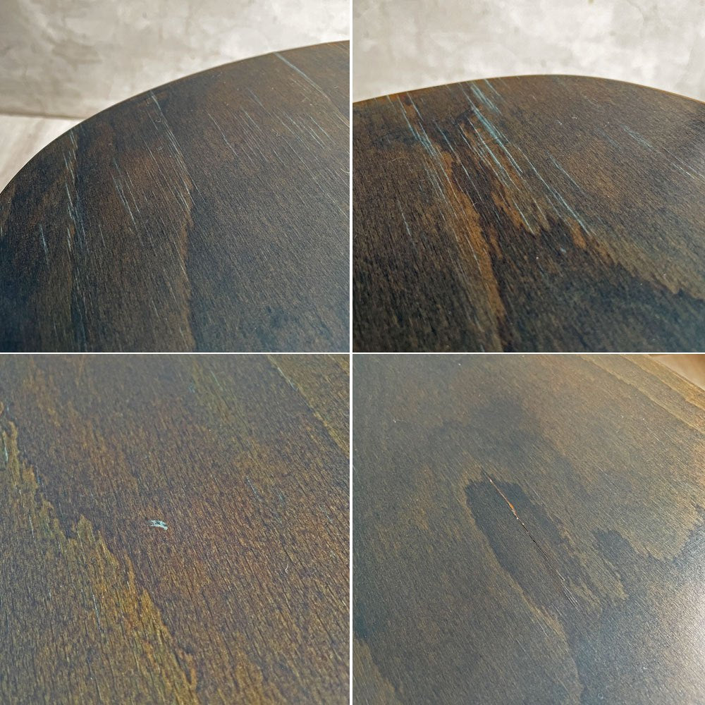 使用に伴う傷や擦れ、ペイントロス、染みや色ムラが見受けられます。座面の色合いは個体差によるものになります。また、座面表面にヒビや亀裂が見られますが、強度等に問題は無く、これからもご実用頂けるコンディションを保っております。