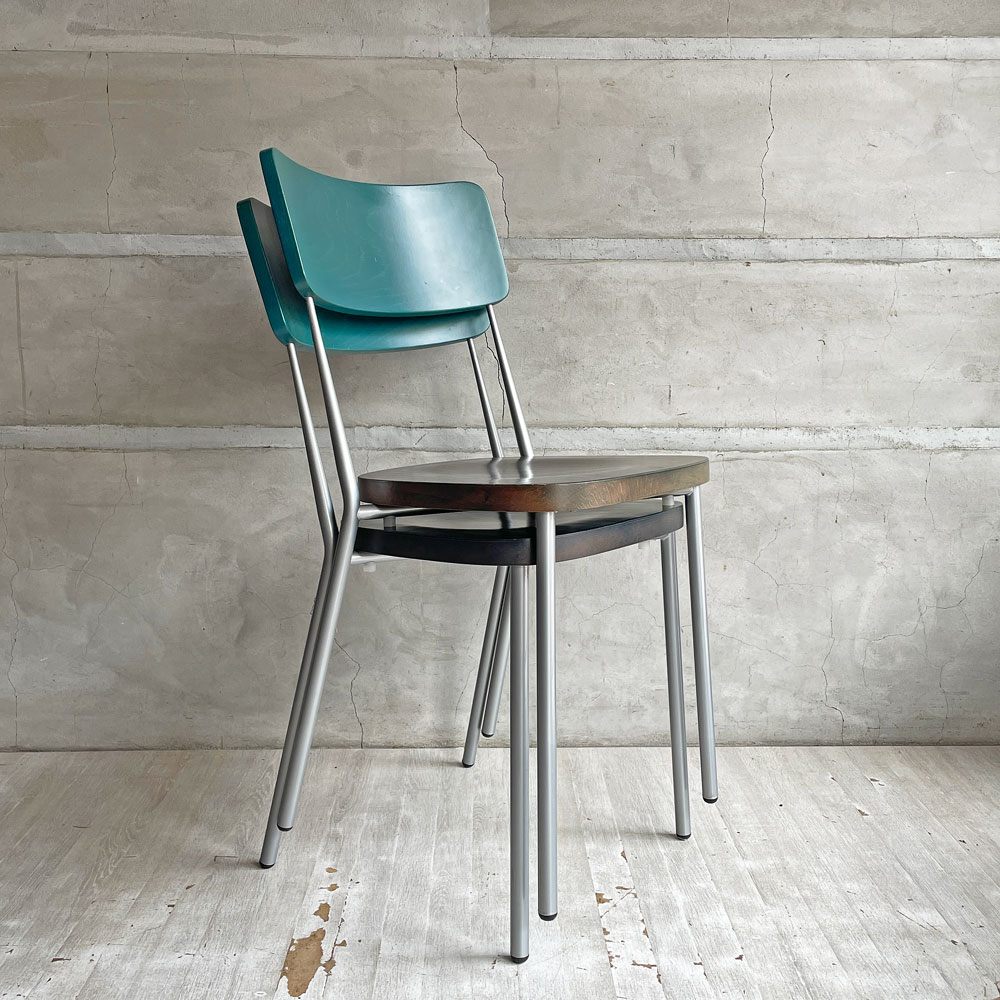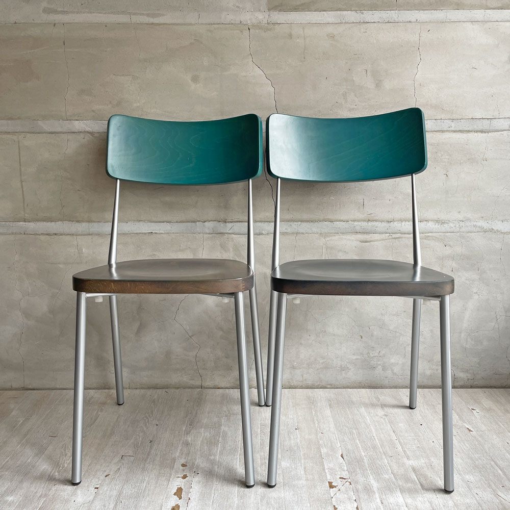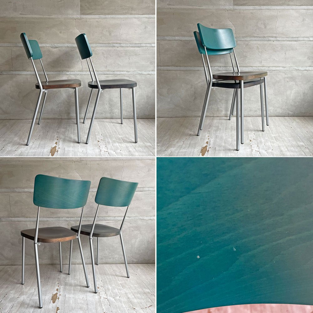 エミュー emu スチールxウッド ダイニングチェア スタッキングチェア グリーン インダストリアルテイスト 2脚セット ♪