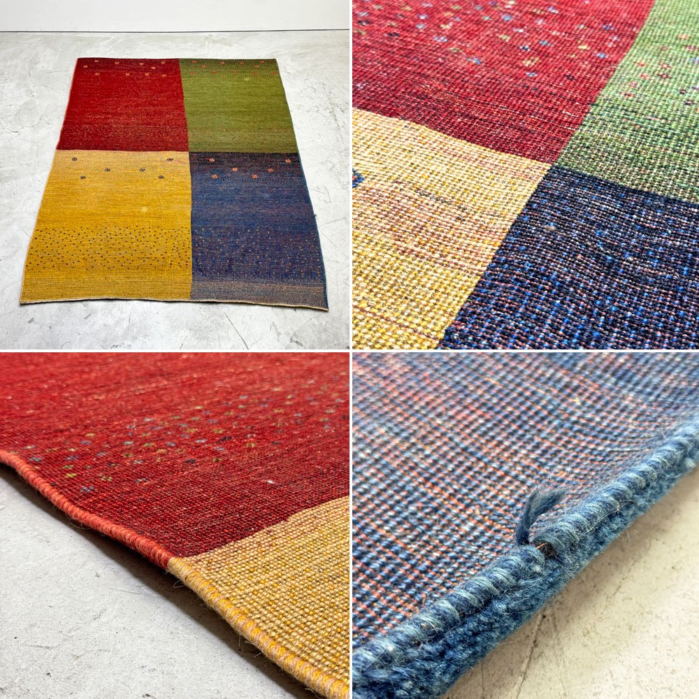 イラン ギャッベ GABBEH ラグ ウール 絨毯 カーペット 花モチーフ マルチカラー 赤 青 黄 緑 146×200cm●