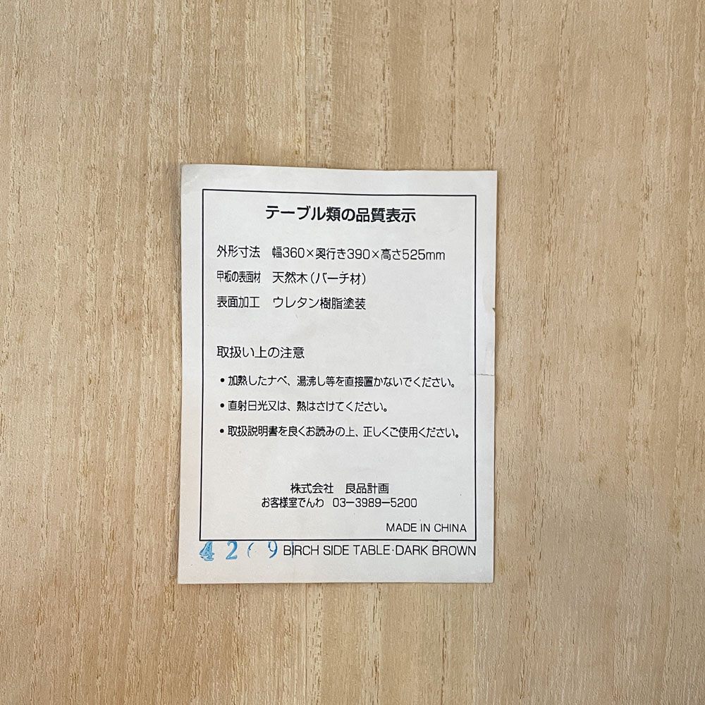 暮らしに溶け込むシンプルで飾らないデザインが魅力の無印良品(MUJI)より、廃番のバーチ材サイドテーブルです。