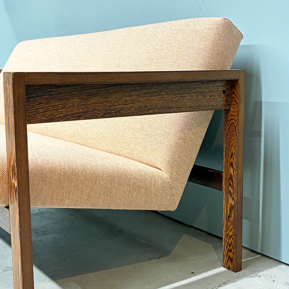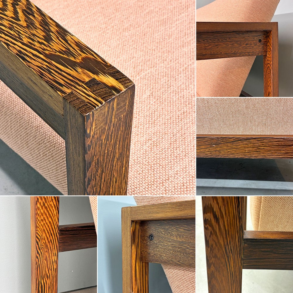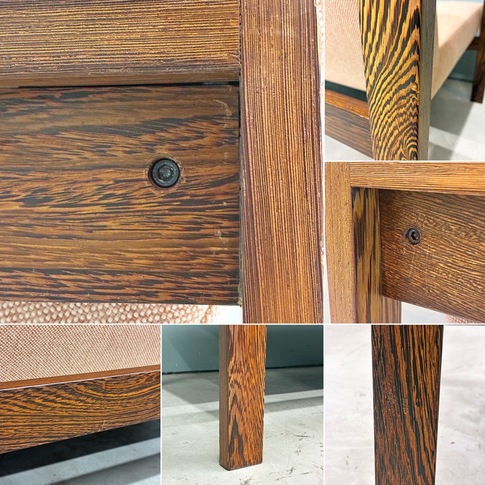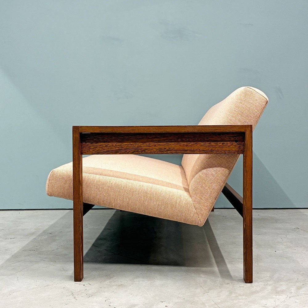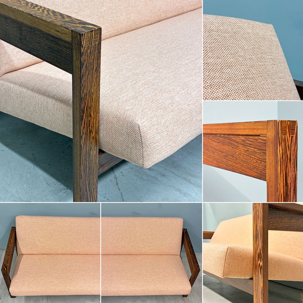 こちらはビンテージのお品物です。経年に伴い、ウッドフレームに擦れや傷、細かな打痕が複数見受けられますが、風合いとしてお楽しみ頂ける程度かと思われます。ファブリックは専門業者様にてマハラム社modeで張替済なので新品の様な仕上がりです。フレームは弊社専門スタッフがサンディング&ラッカー塗装仕上げを施しております。その他、割れやぐらつき、軋みなど使用に問題となる大きなダメージの見られない概ね良好なコンディションを保っております。