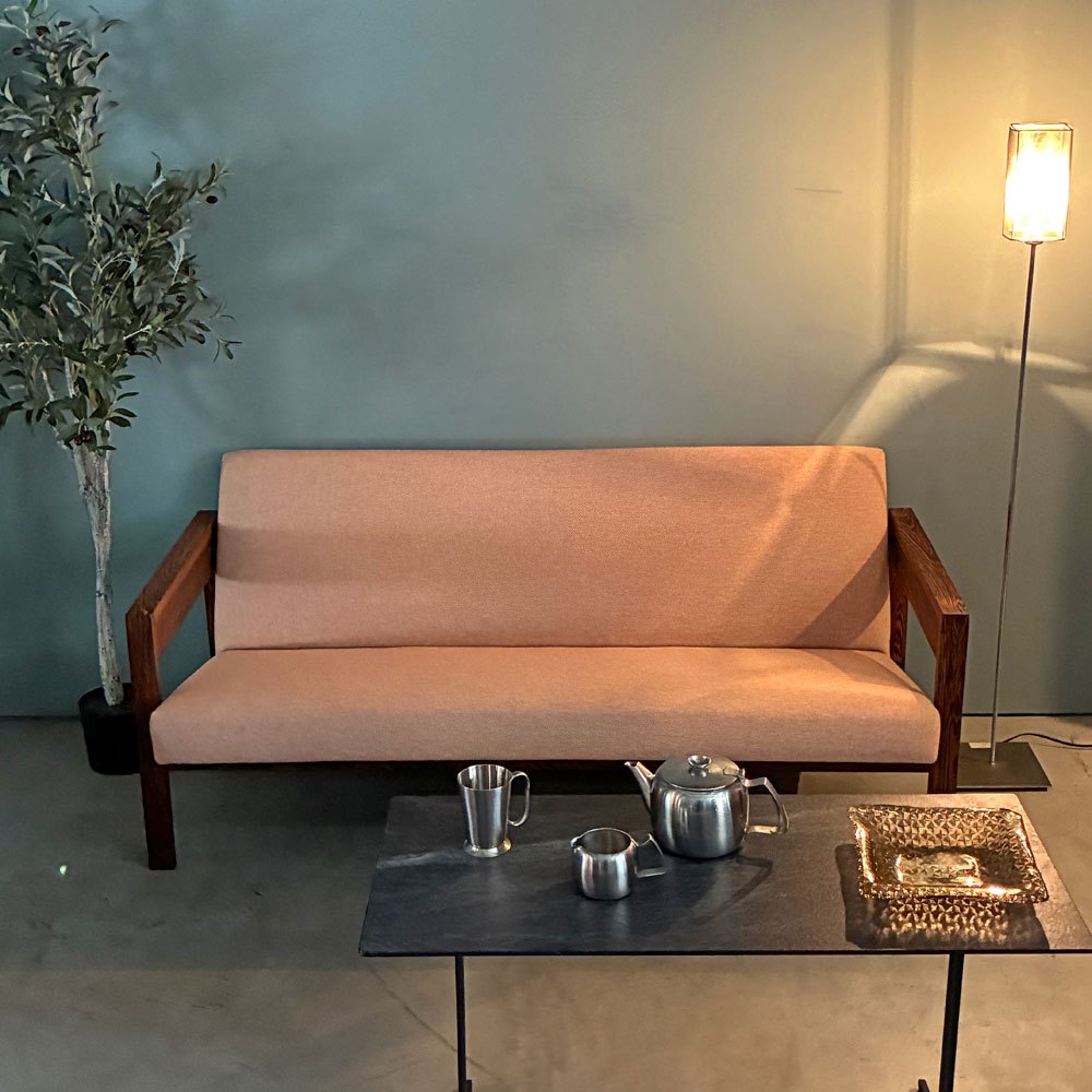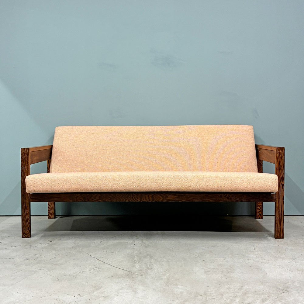 背座・脚部共に直線を基調にしたシンプルなデザインの2シーターソファです。