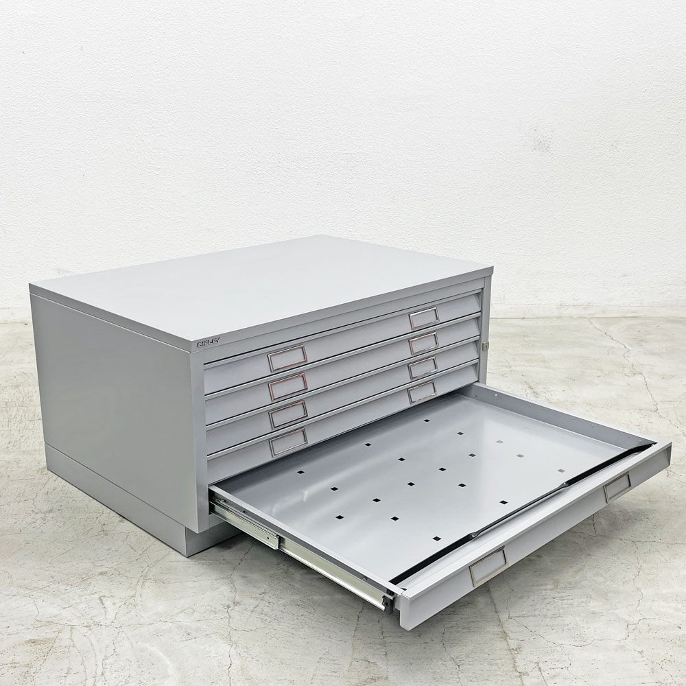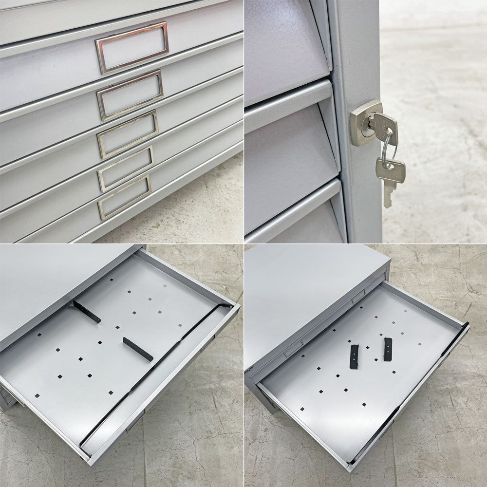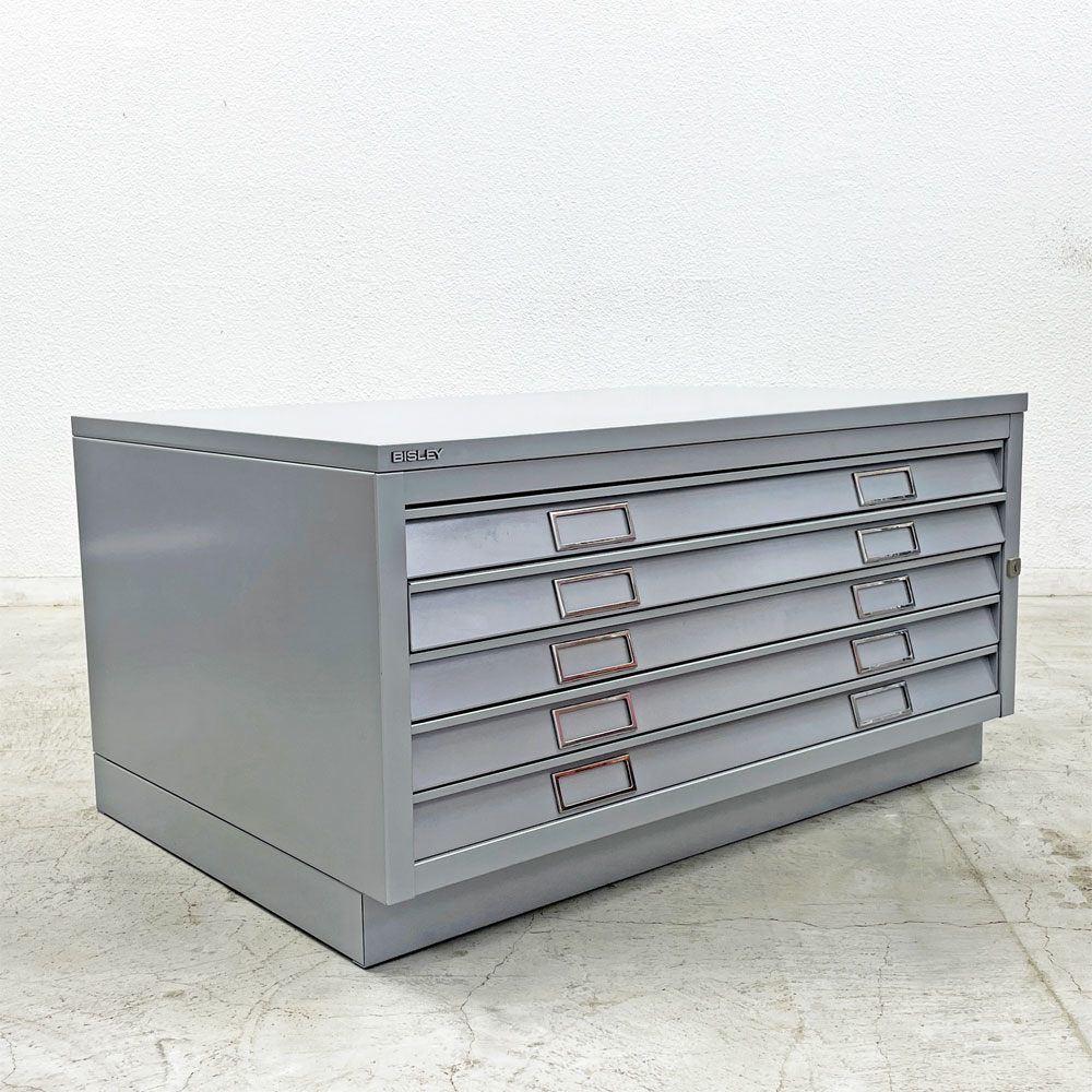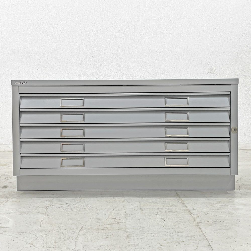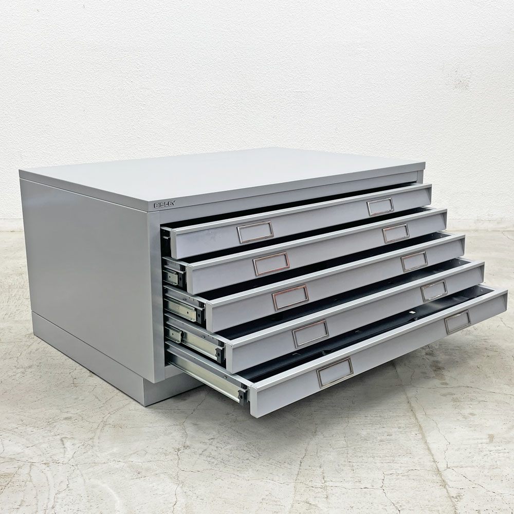 ビスレー BISLEY FCB43 A1サイズ マップケース 引き出し5段 鍵付き シルバー キャビネット ポスター 図面 画材 絵画保管 イギリス 定価約275,000円 〓