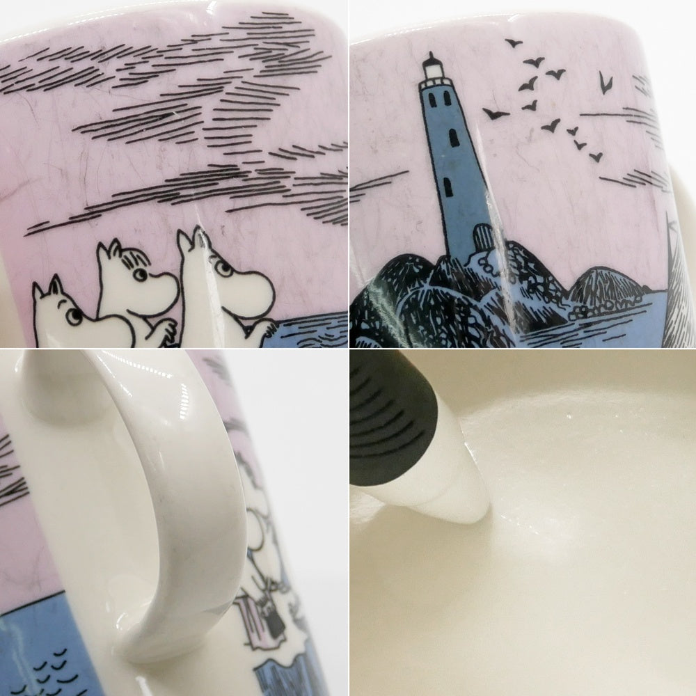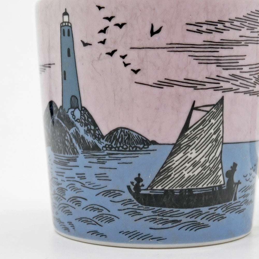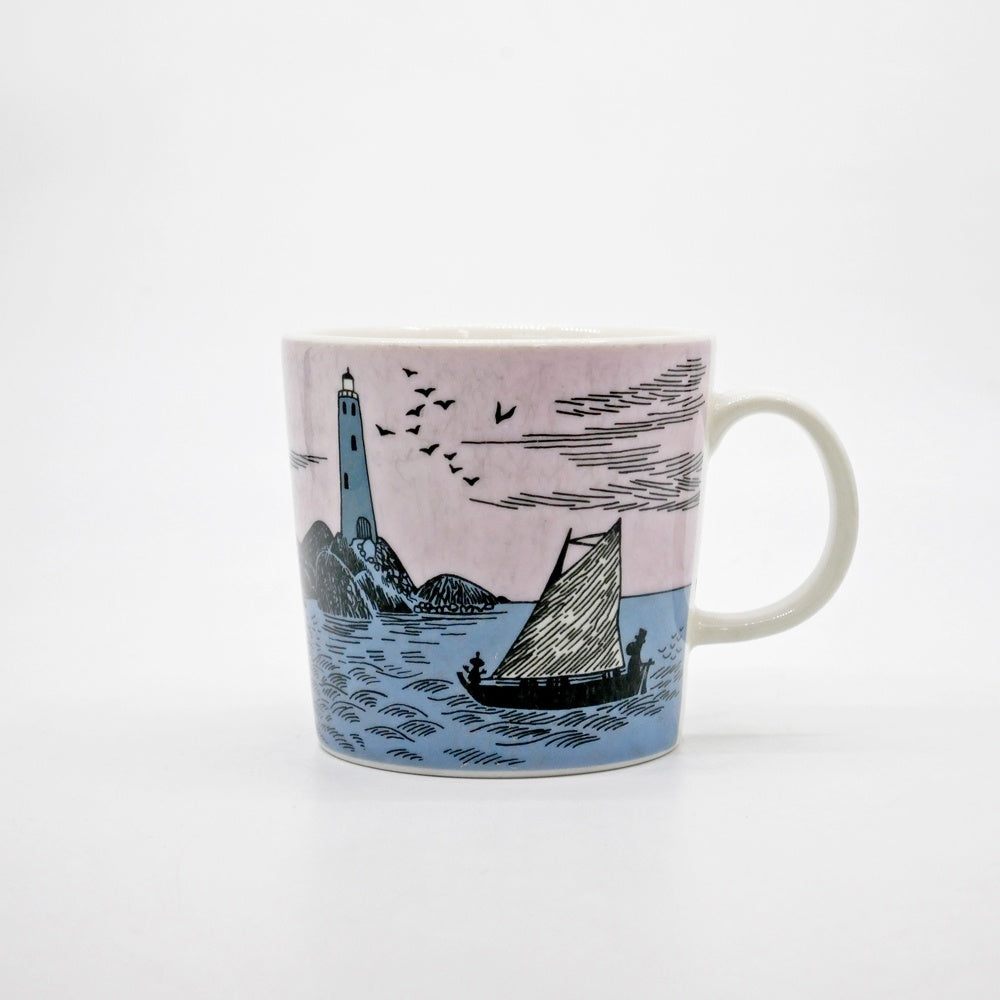 淡いピンクとブルーの美しい色合いは勿論、キャラクターは控えめに風景をメインにした絵柄は、ムーミンマグのシリーズの中では珍しいのではないでしょうか。