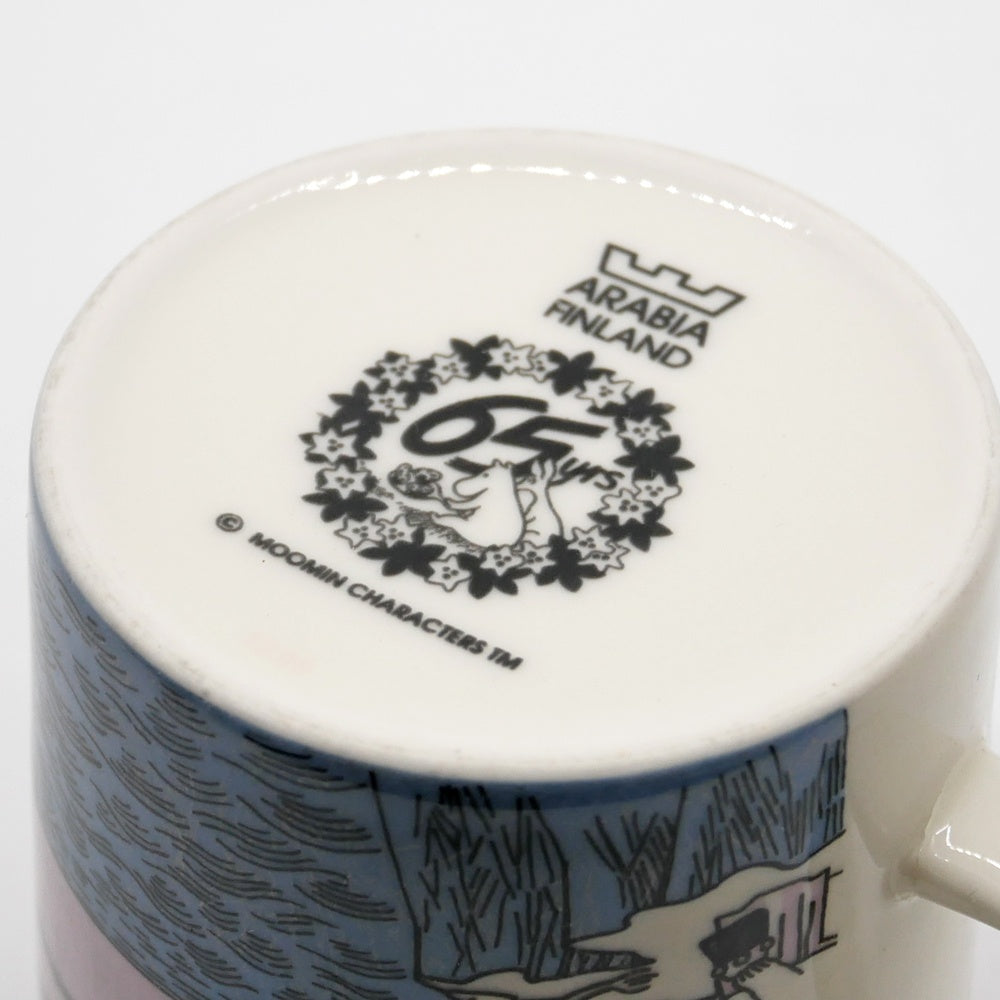 フィンランド" アラビア ARABIA "社から発売された人気のムーミンシリーズ。こちらは、ムーミン生誕65周年記念の「ナイトセーリング」のマグカップです。