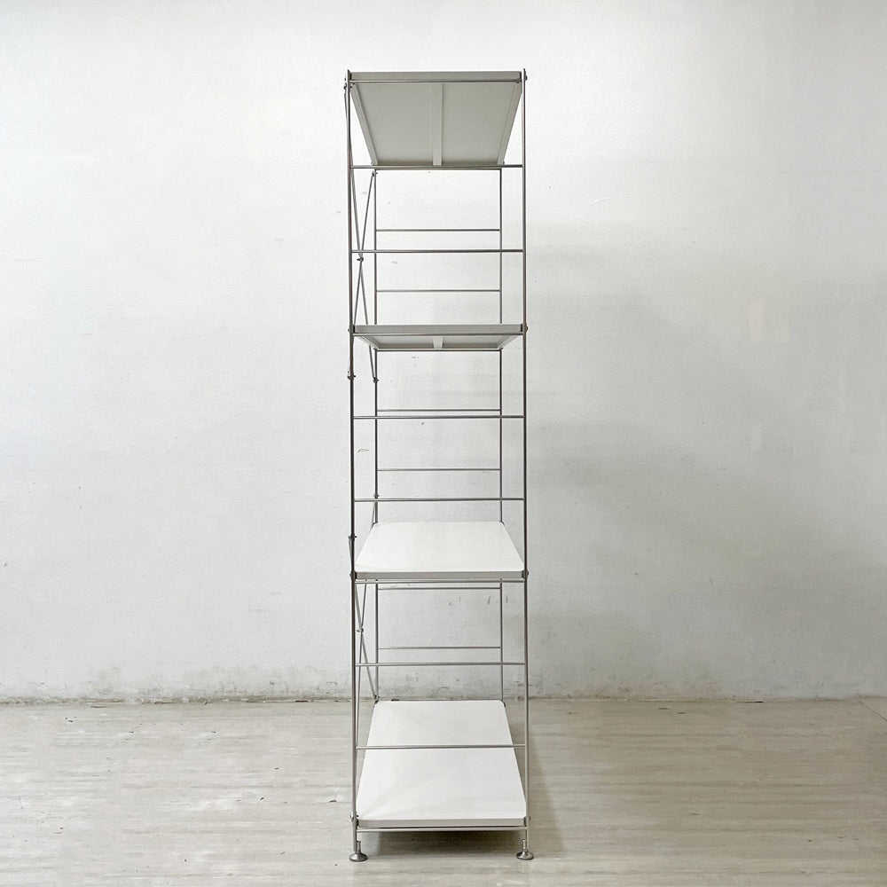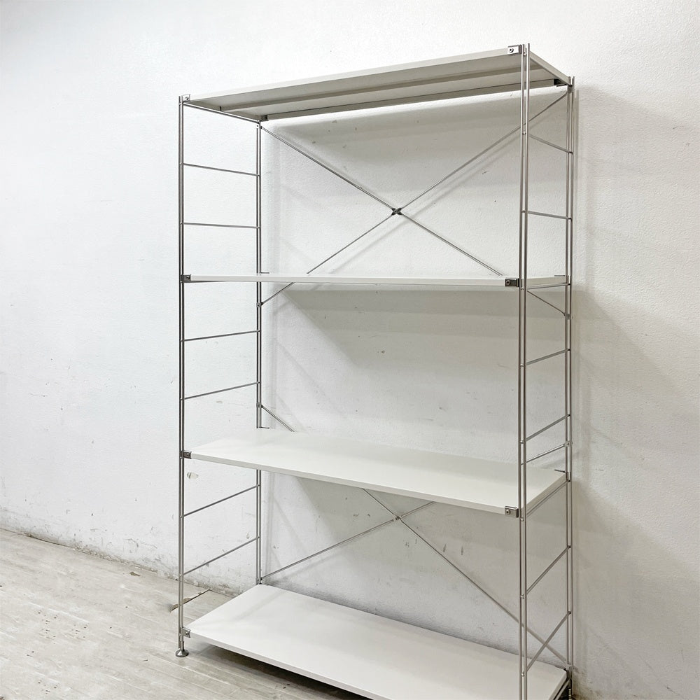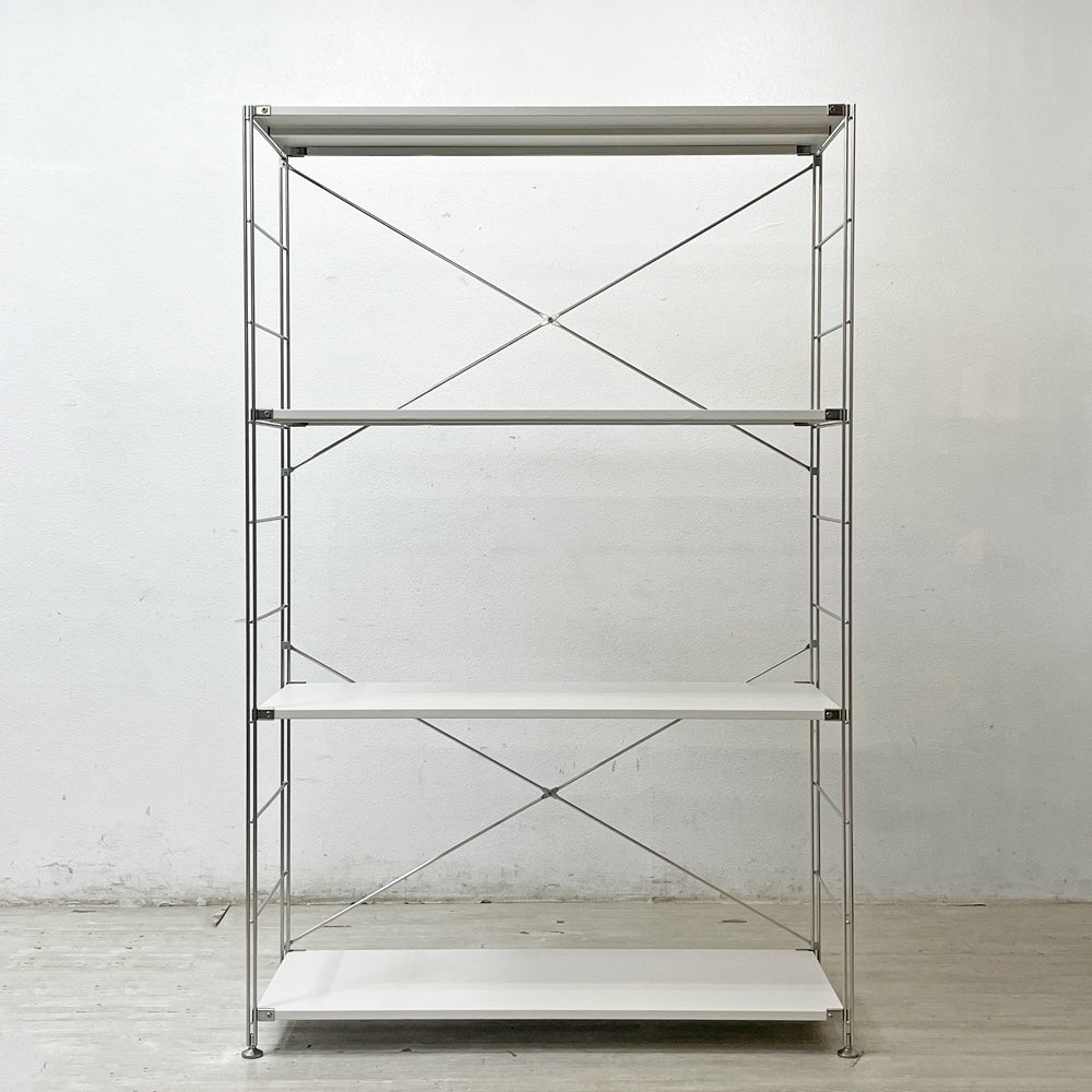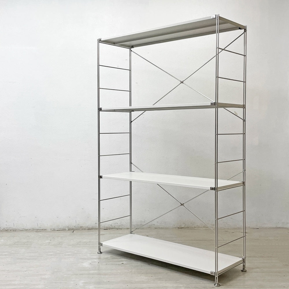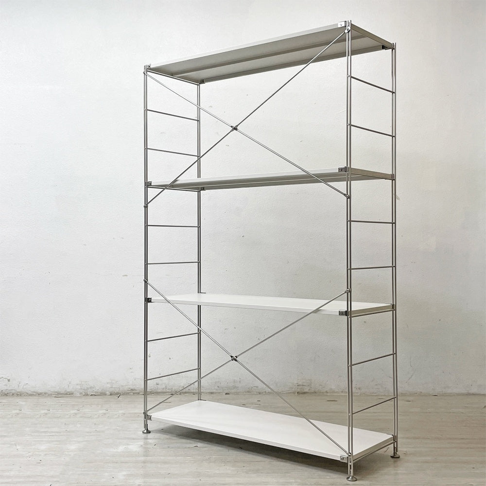 無印良品 MUJI ステンレスユニットシェルフ オープンシェルフ 本棚 飾り棚 収納棚 棚板4枚 ライトグレー W114cm H175cm ●
