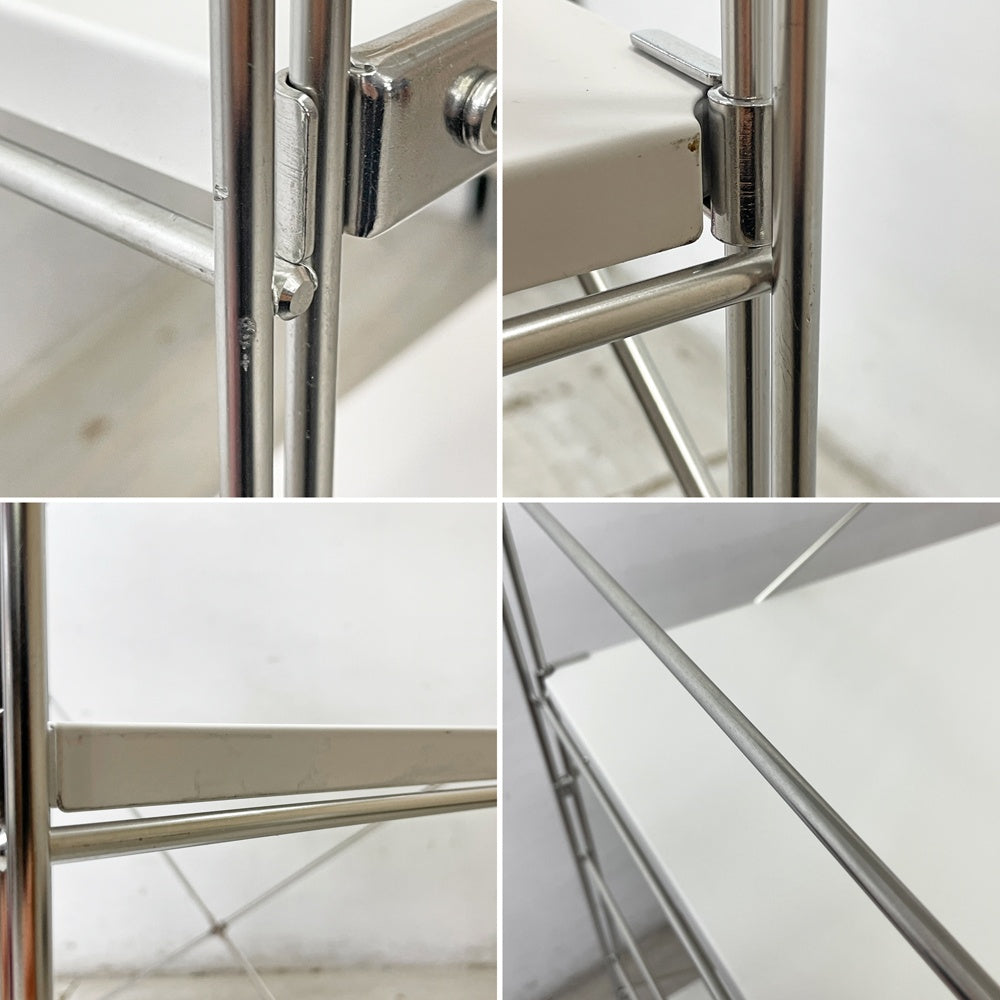 使用に伴い、天板・棚板に細かな傷や擦れ、ペイントロス、フレームには僅かな打痕傷やくすみがございます。