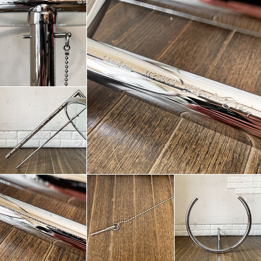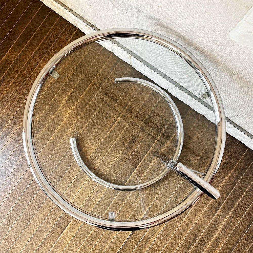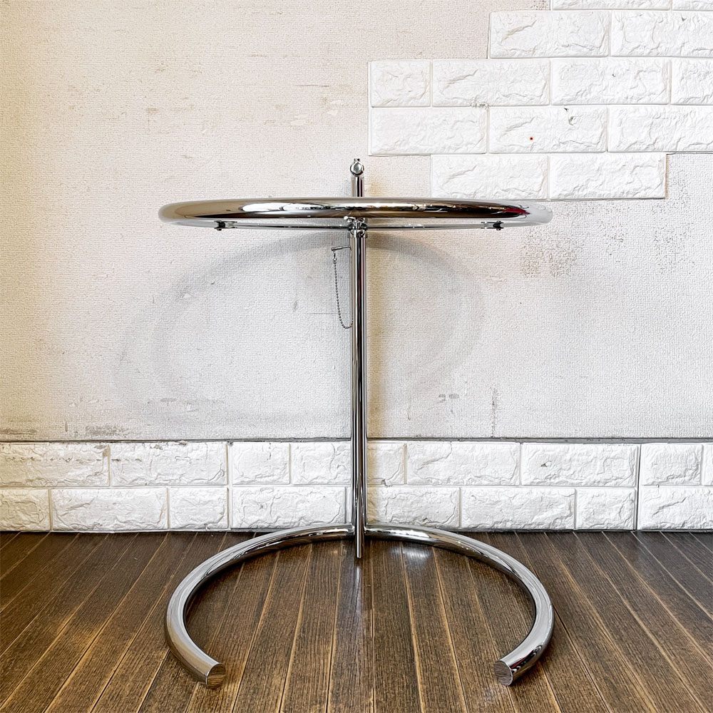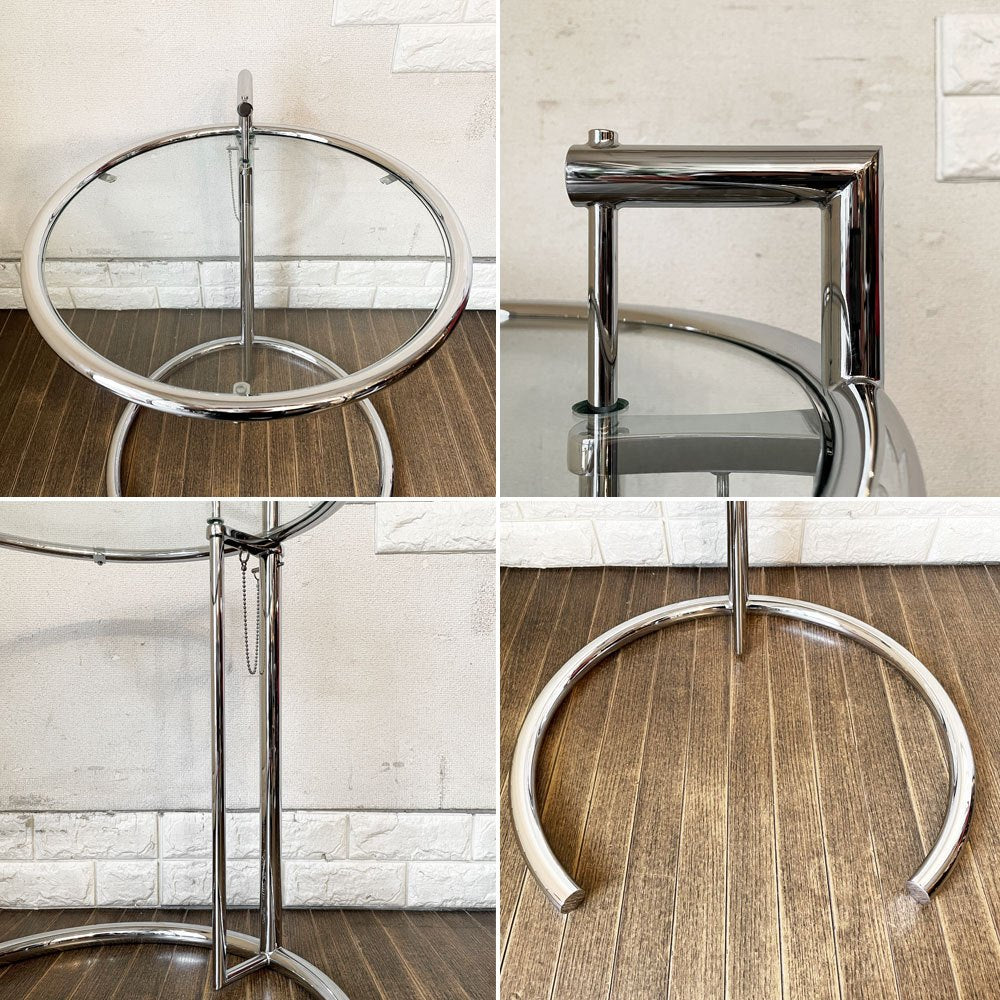 クラシコン ClassiCon アジャスタブルテーブル E1027 サイドテーブル ガラストップ クロームフレーム Φ50.5cm アイリーン・グレイ ドイツ 定価¥217,800- ◎