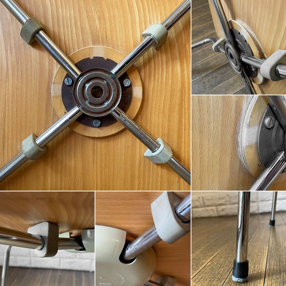 使用に伴い、シェル表面に光の加減で見える程度の細かな擦れや線傷、色ムラ、背面にテープ痕、縁を中心に打痕、一部に取り切れない汚れが見受けられます。また、スチール部分に擦れや傷、くすみ、僅かな錆、ゴムパーツにヒビ割れがございますが、実用強度に問題はございません。その他、使用の問題となるぐらつきなどのダメージはなく、これからもまだまだ実用いただけるコンディションを保っております。