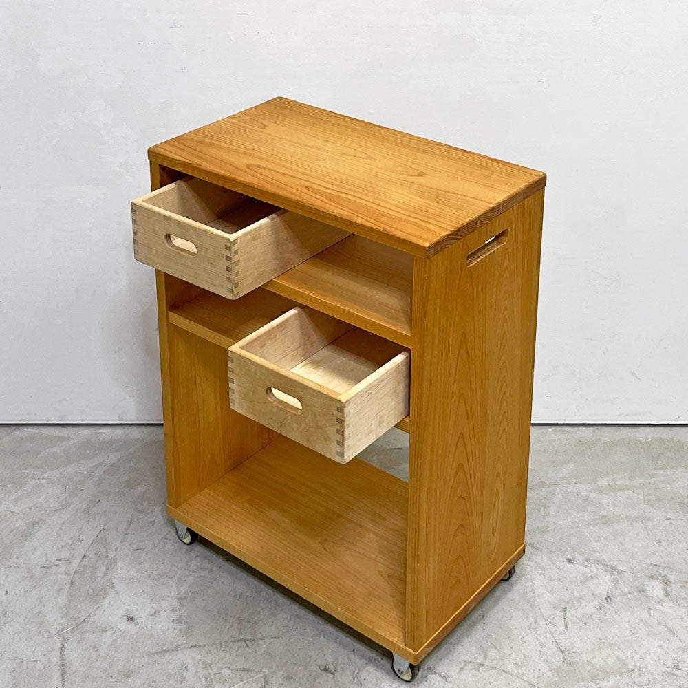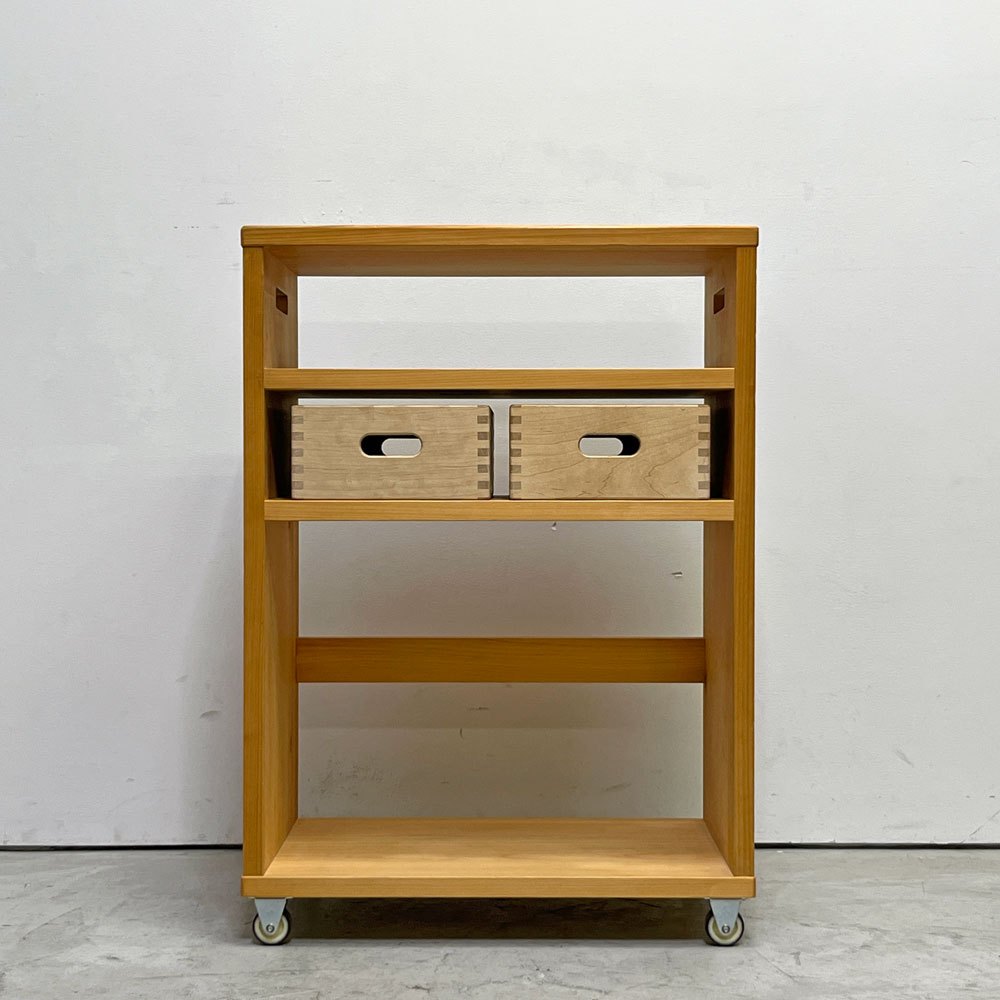 キシル XYL オープンワゴン ハイ ストレージBOX付き キャスター付き 国産ひのき無垢材 W50xD29xH70cm ●