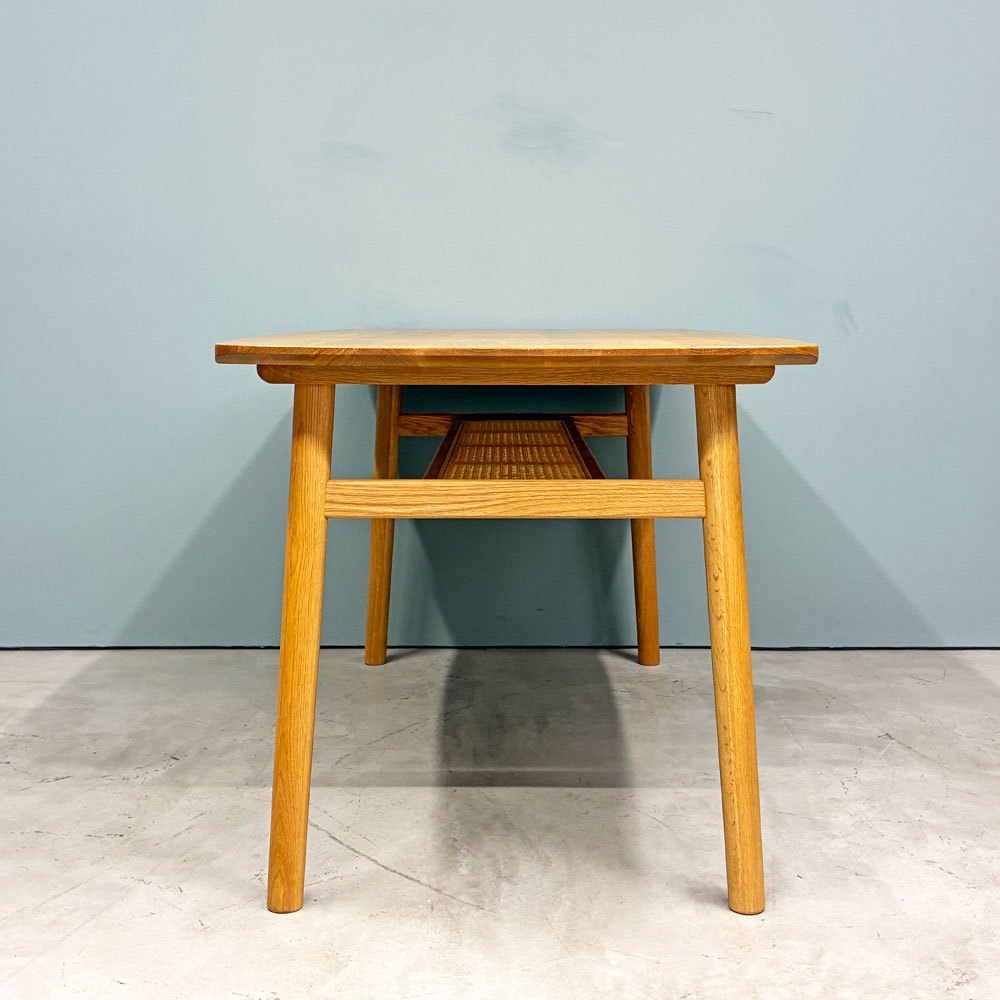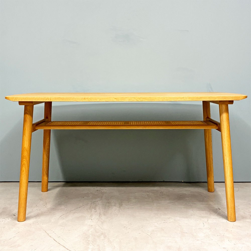 下にはカゴメ編みの簡易的なラックが備わっており、デザイン性と利便性を両立しています。