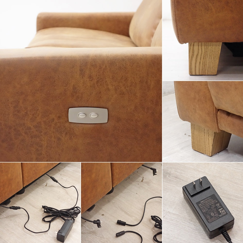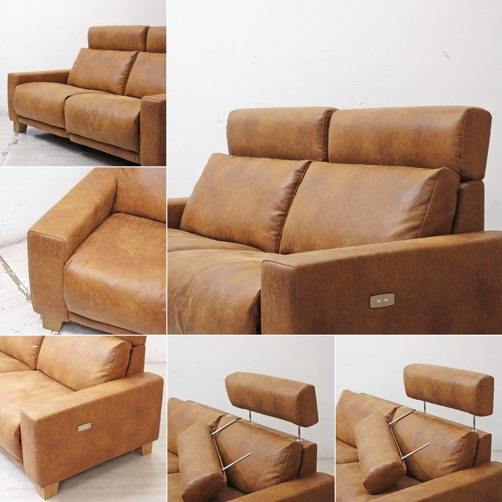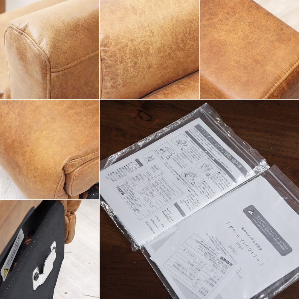 クラッシュゲート CRASH GATE グリード 2.5人掛け リクライニングソファ スーパーレザーテックス オーカーブラウン w180cm 関家具 美品 ●