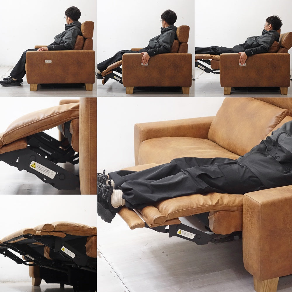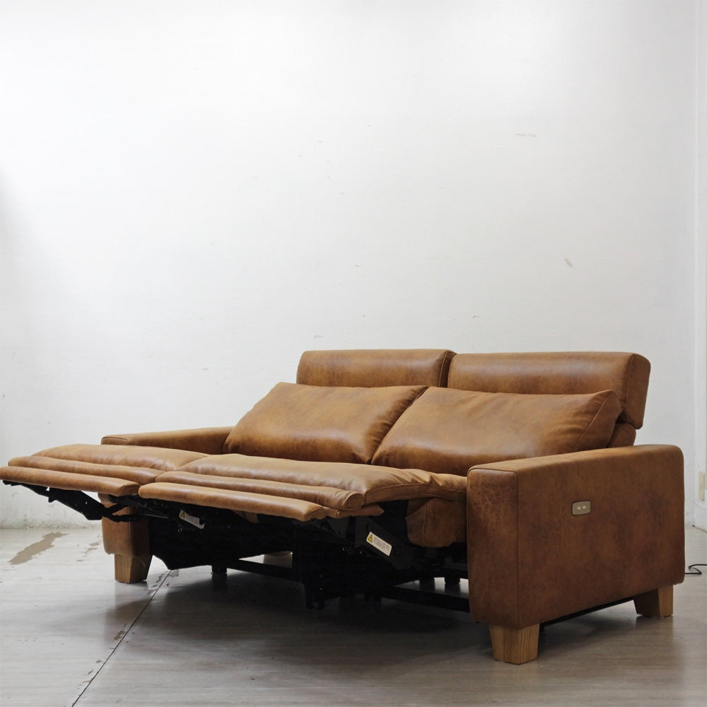 グリード 2.5人掛け リクライニングソファ スーパーレザーテックス オーカーブラウン