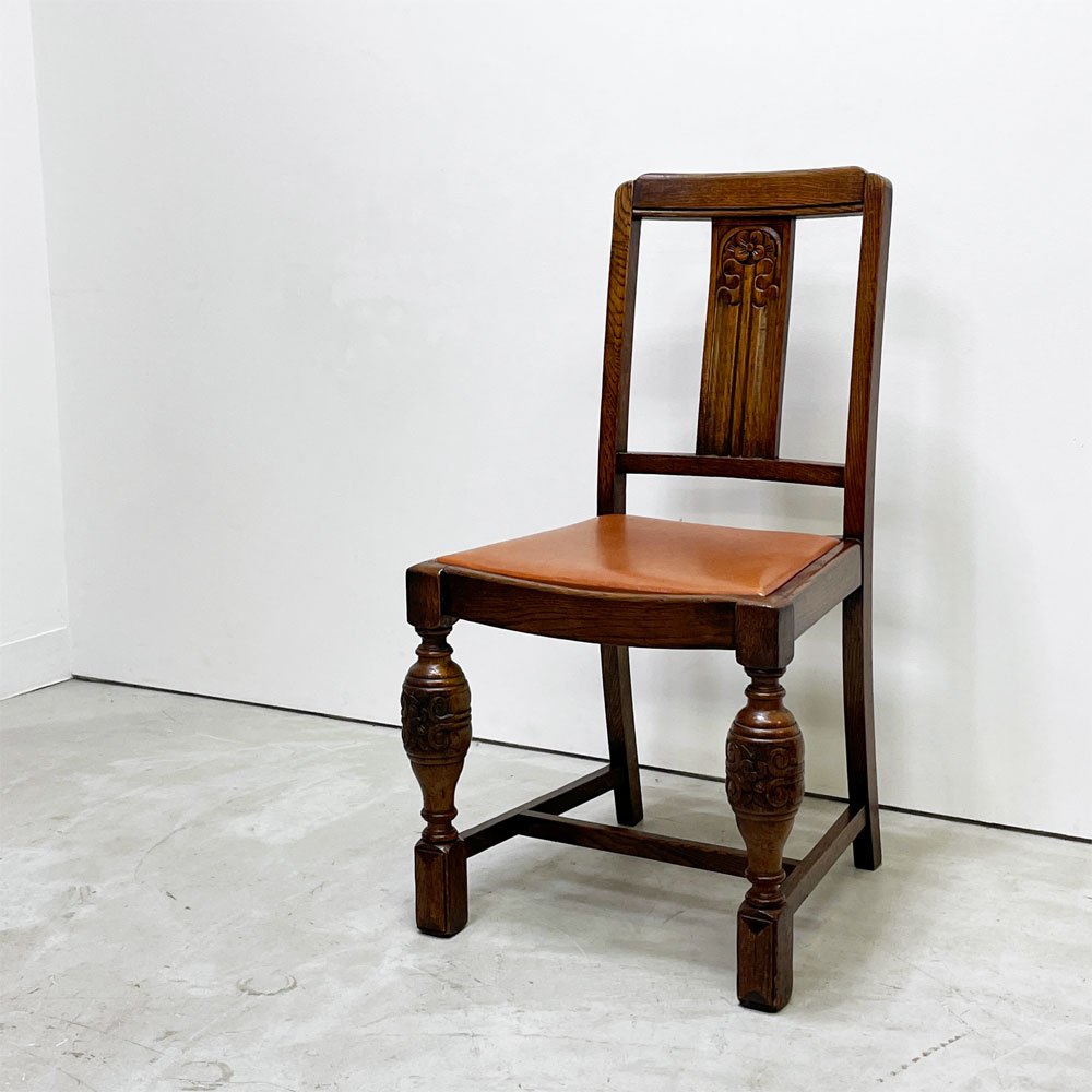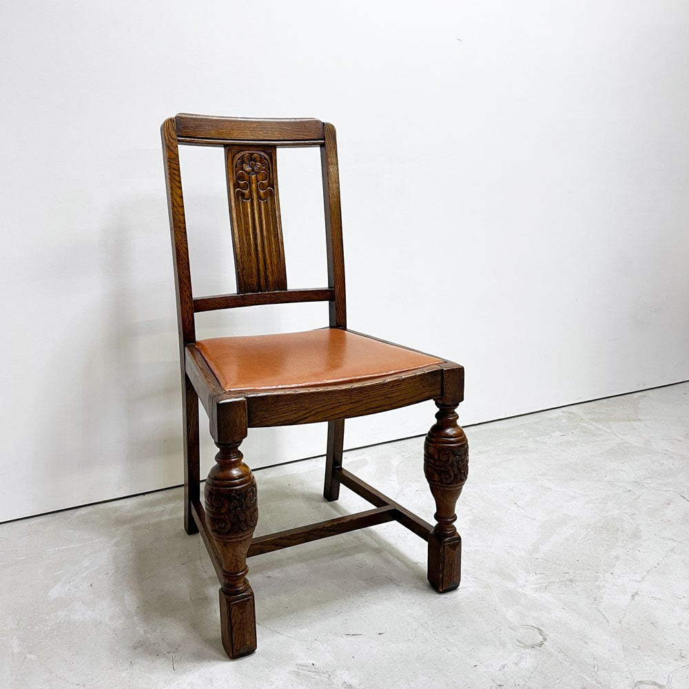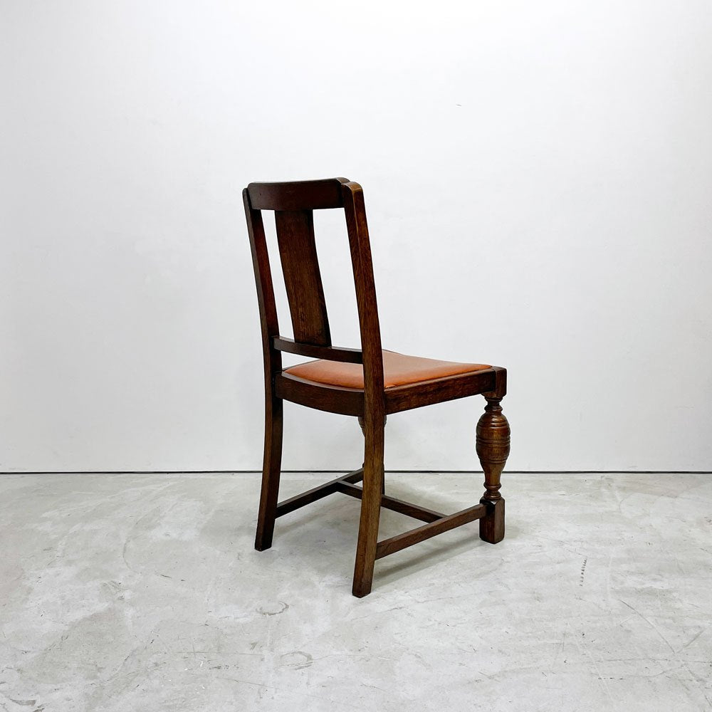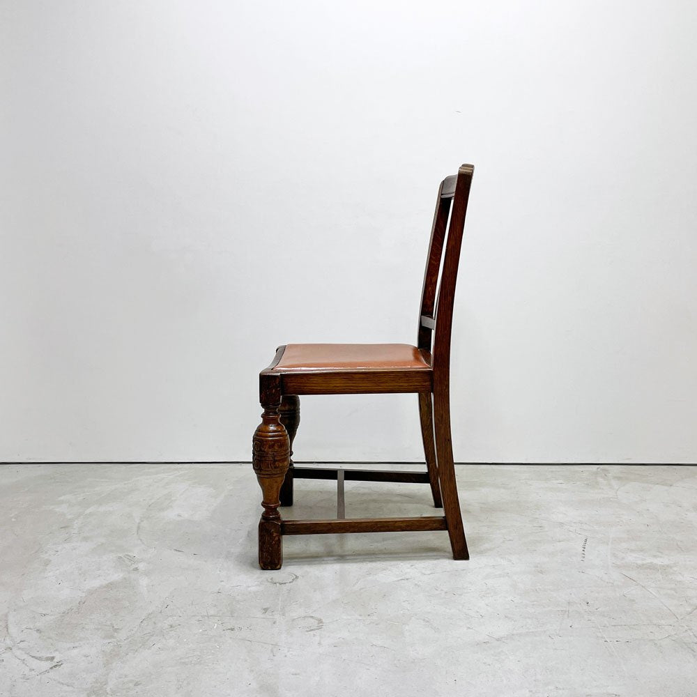 UKビンテージ vintage オーク材 ダイニングチェア バルボスレッグ PVCレザー 英国家具 アンティーク A ●