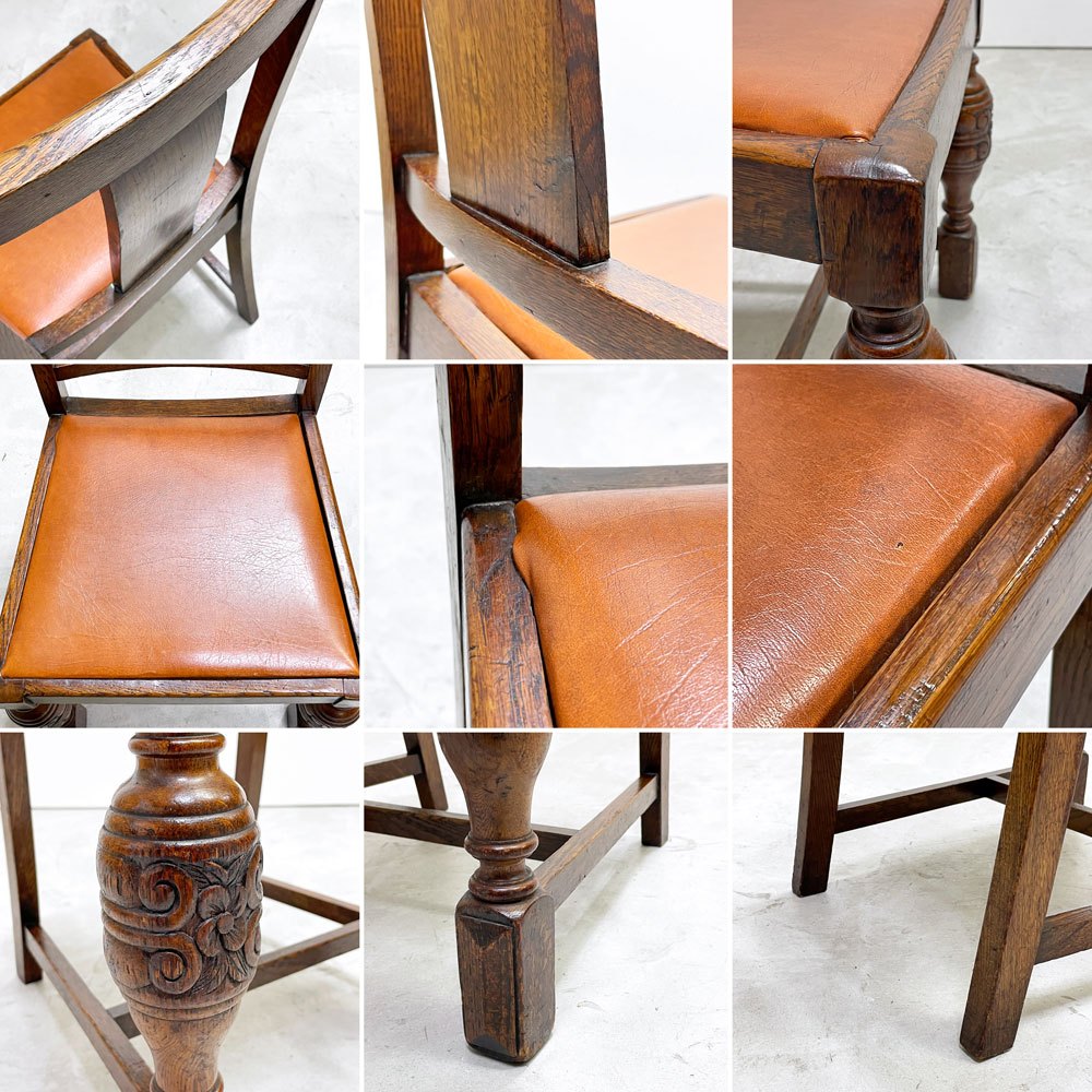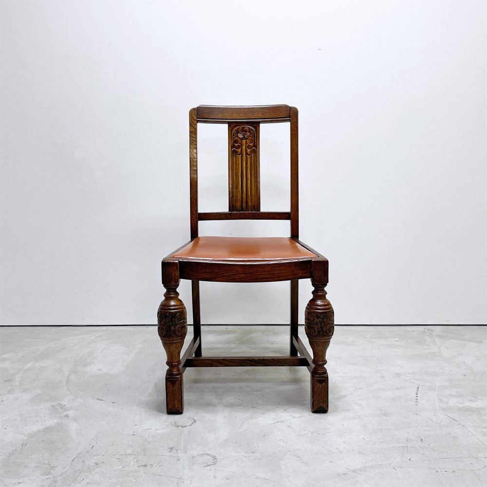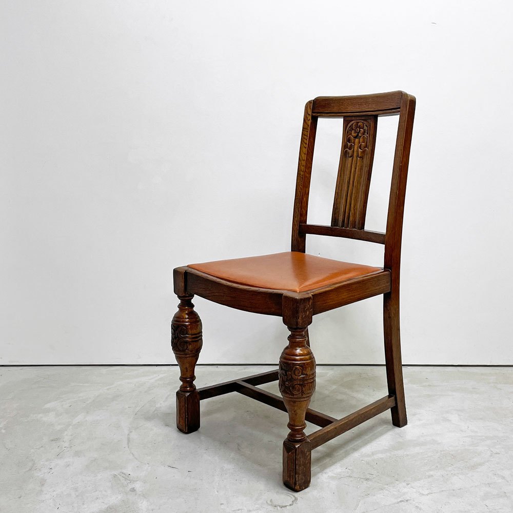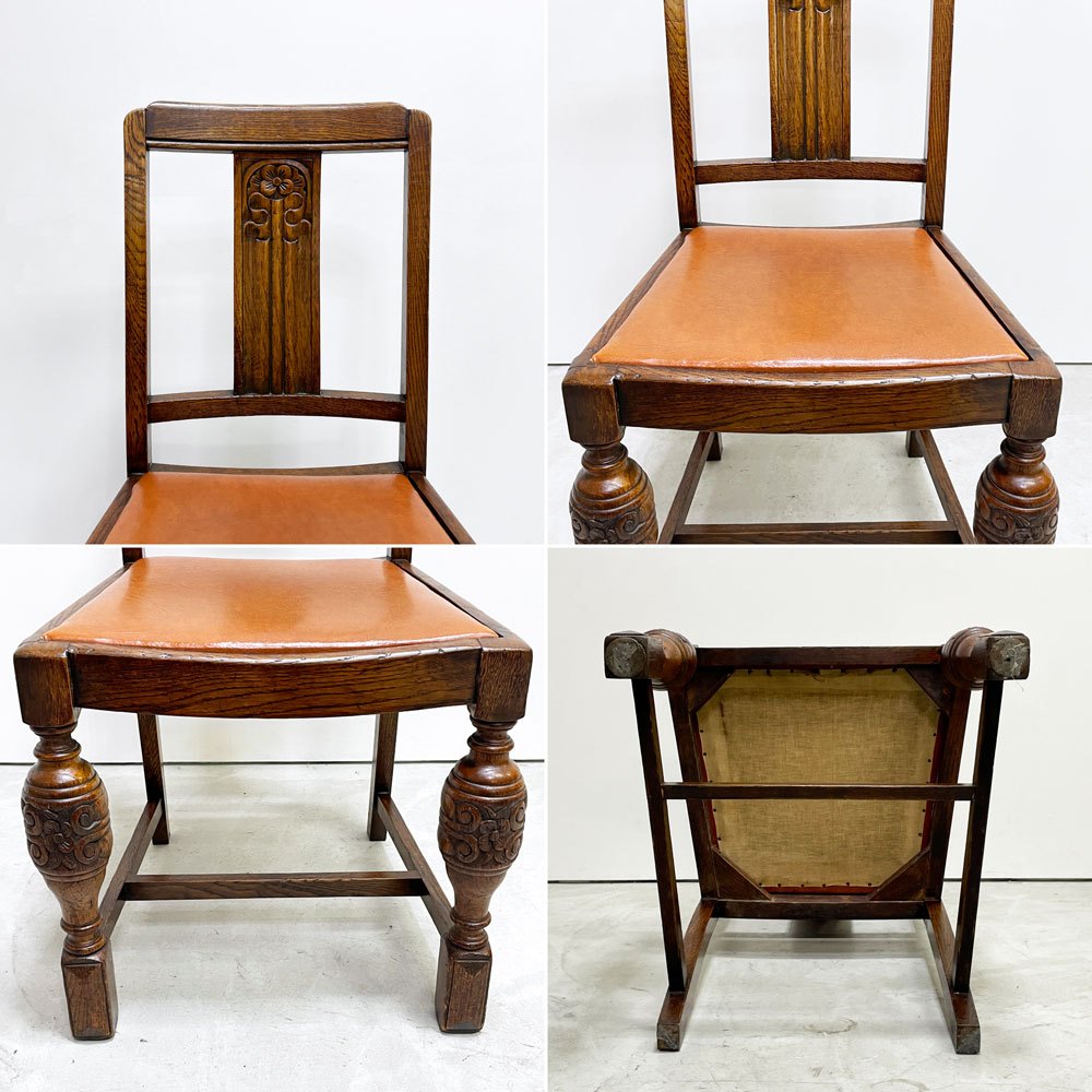 UKビンテージ vintage オーク材 ダイニングチェア バルボスレッグ PVCレザー 英国家具 アンティーク A ●
