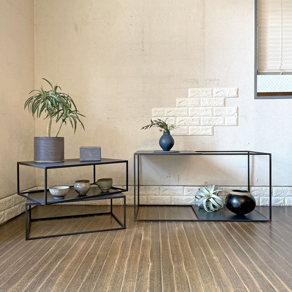 ハタノワタル 和紙×アルミ天板×アイアンフレーム 展示台 コンソール 花台 ローテーブル ブラック W90cm ディスプレイ インダストリアル 店舗什器 現代作家 ~まだ見ぬ伝統素材の可能性~