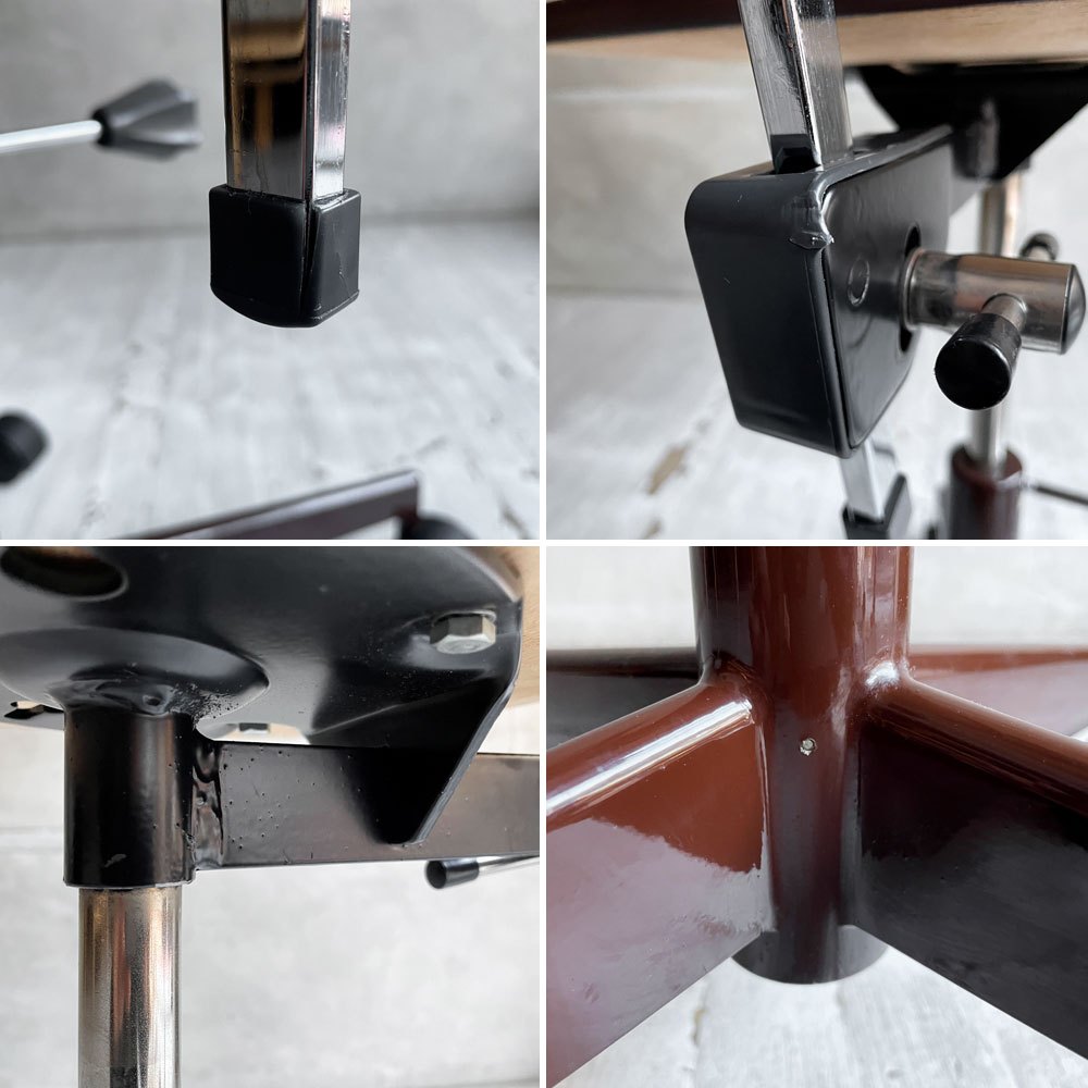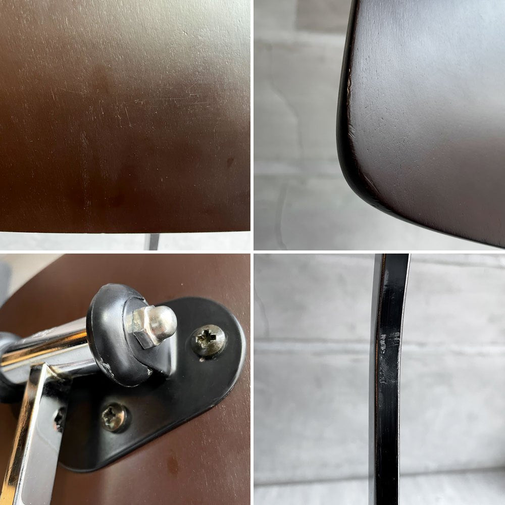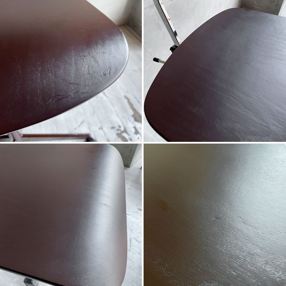 使用に伴う傷や擦れ、色ムラやペイントロス、くすみや軽微な汚れなどがございます。また、樹脂パーツの割れや欠け、座面全体に線状の傷が見受けられます。多少の使用感はございますが機能やご使用に問題となるようなダメージなどもございません。まだまだお使い頂けるお品物となっております。
