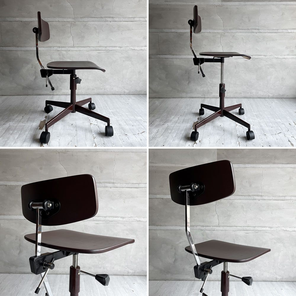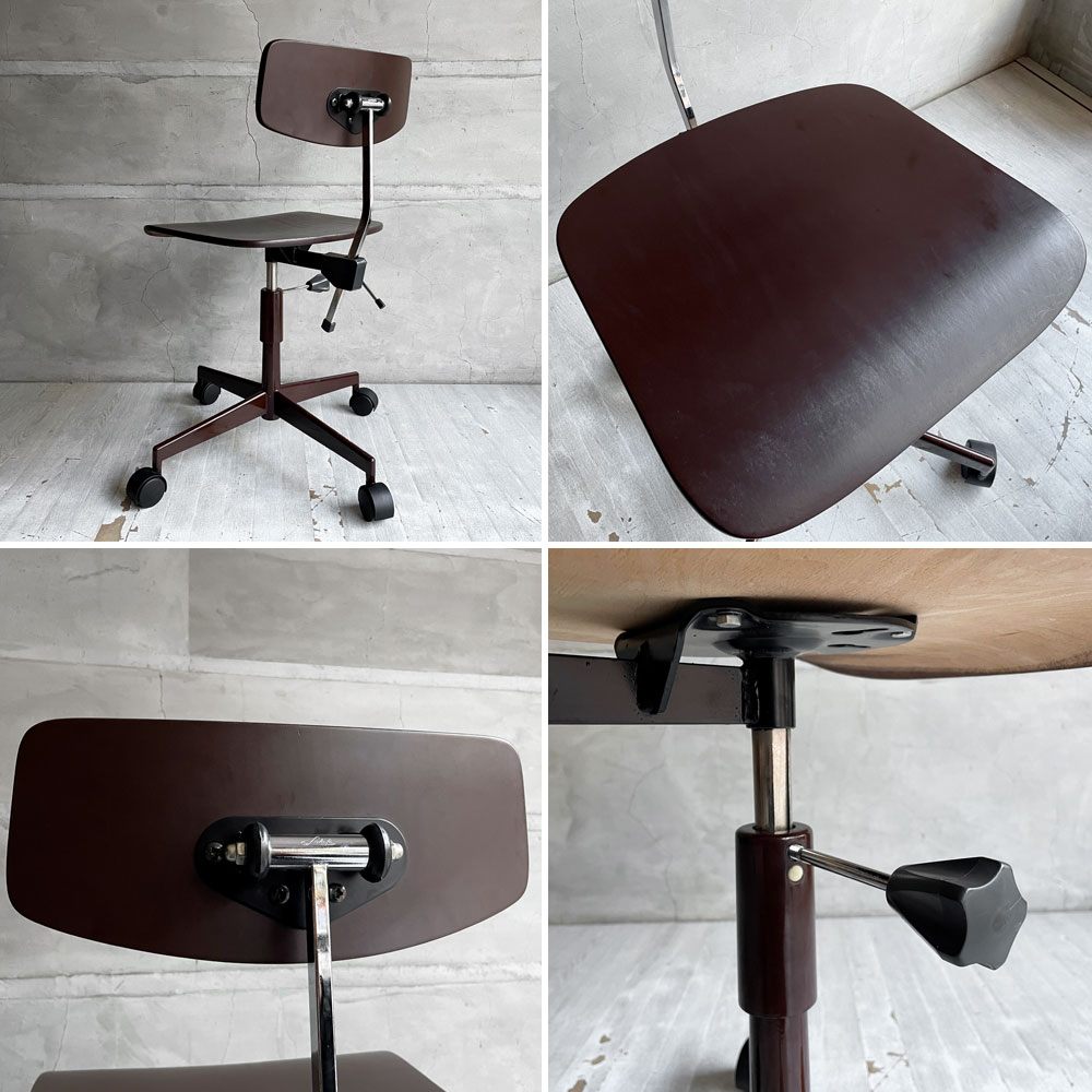 そのKEVIチェアを踏襲するように、プライウッドによる軽快なシート、様々な方位へ移動を可能にしたダブルホイール、そして背もたれと高さはネジ固定によるアナログタイプと多くのディティールに共通点が見受けられます。