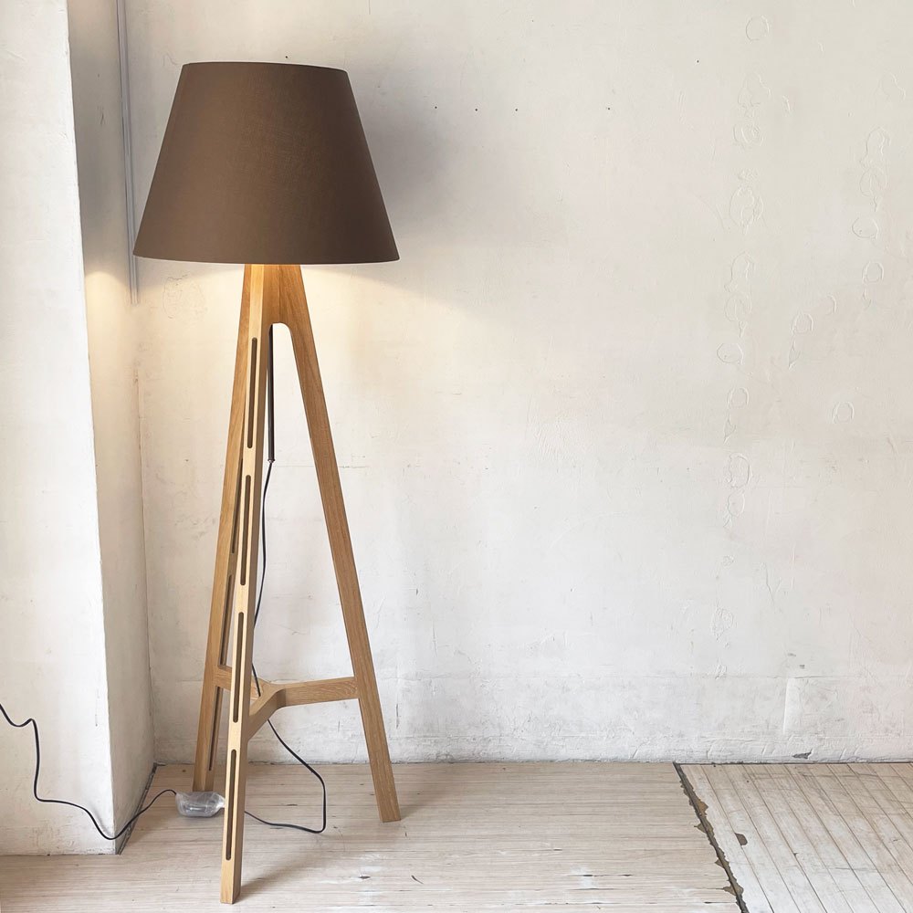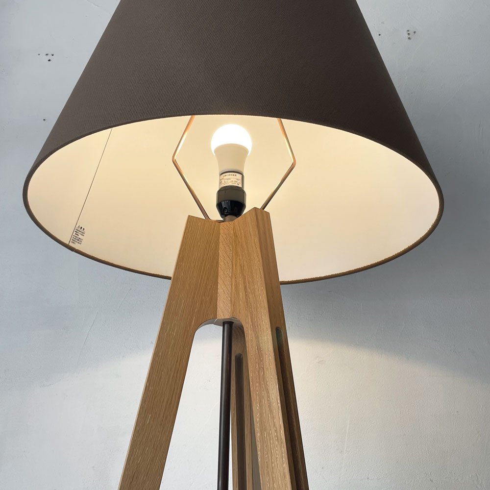 アキ AKI CM-701 フロアランプ オーク材 ブラウン 麻布シェード 高さ調整可能 展示美品