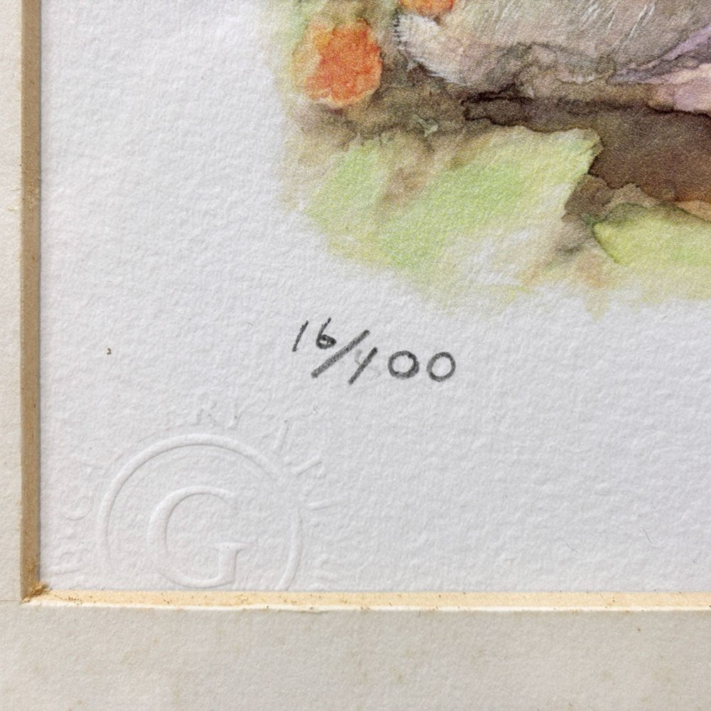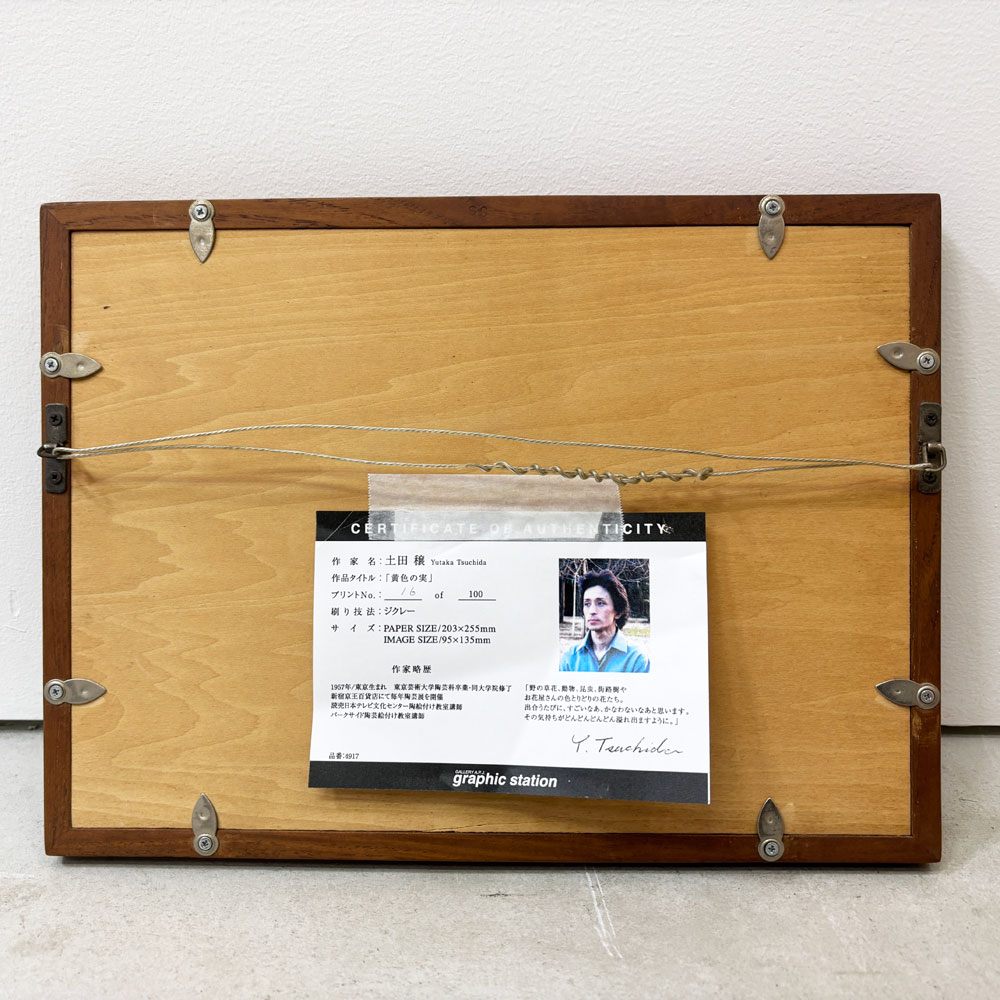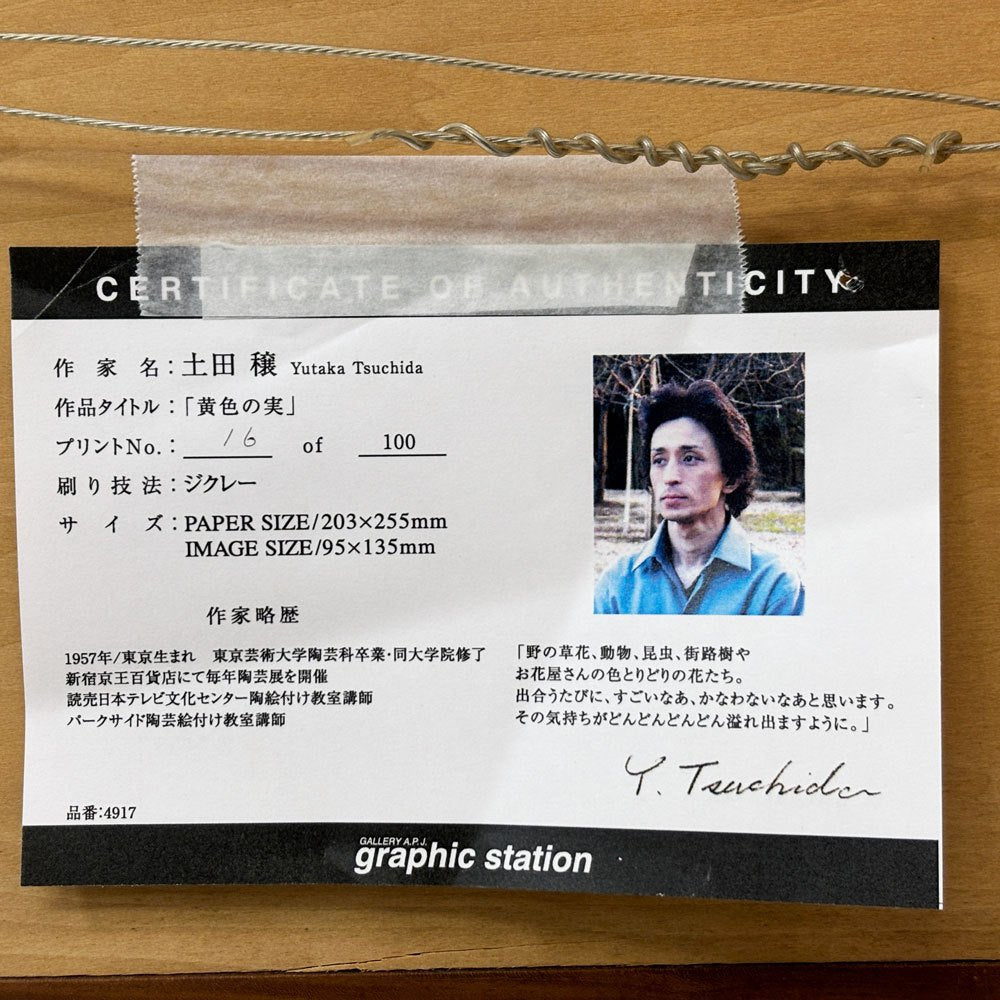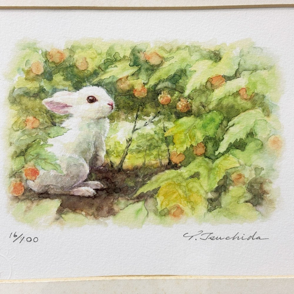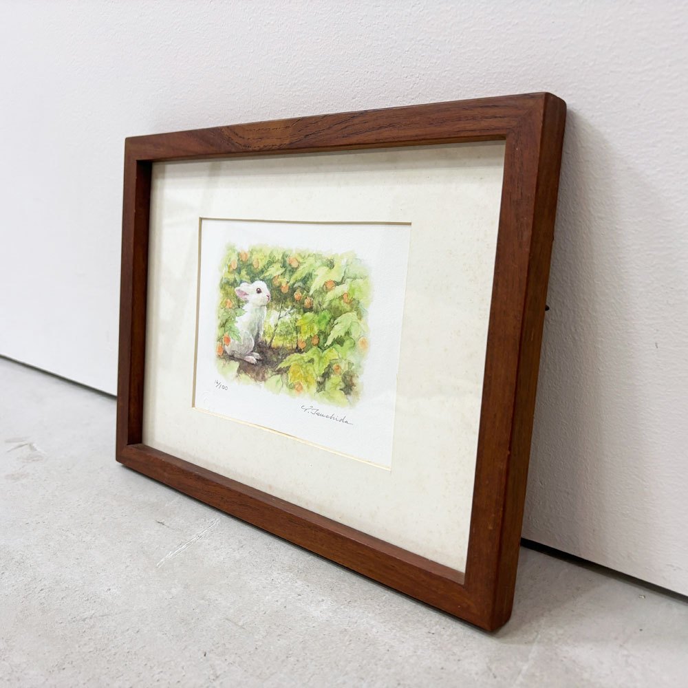 土田穣 ジクレー版画 黄色の実 W32.5cm 16/100 ウサギ 額装品 ●