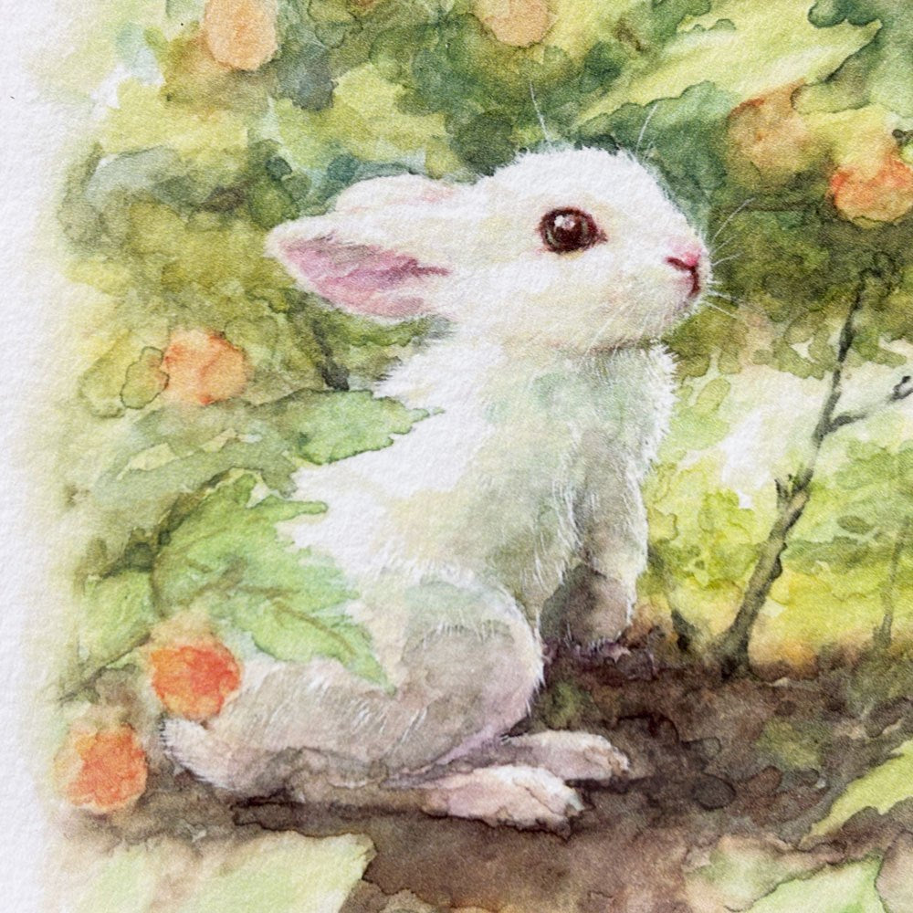 特にうさぎをモチーフにした作品が多く、草花と調和する淡く幻想的な世界観により多くのファンを魅了しています。ピースフルな雰囲気とコンパクトなサイズ感により、お部屋のインテリアとしても取り入れやすい作品です。