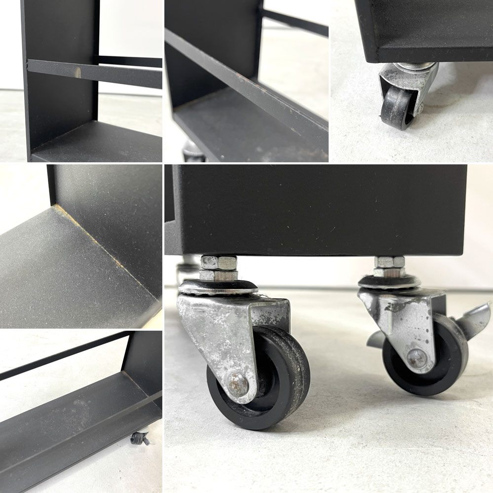 使用に伴い、錆びや取り切れない汚れ、小傷が散見されます。キャスターの動作不良や使用に問題のあるダメージは見受けられず、これからも実用いただけるコンディションを保っております。
