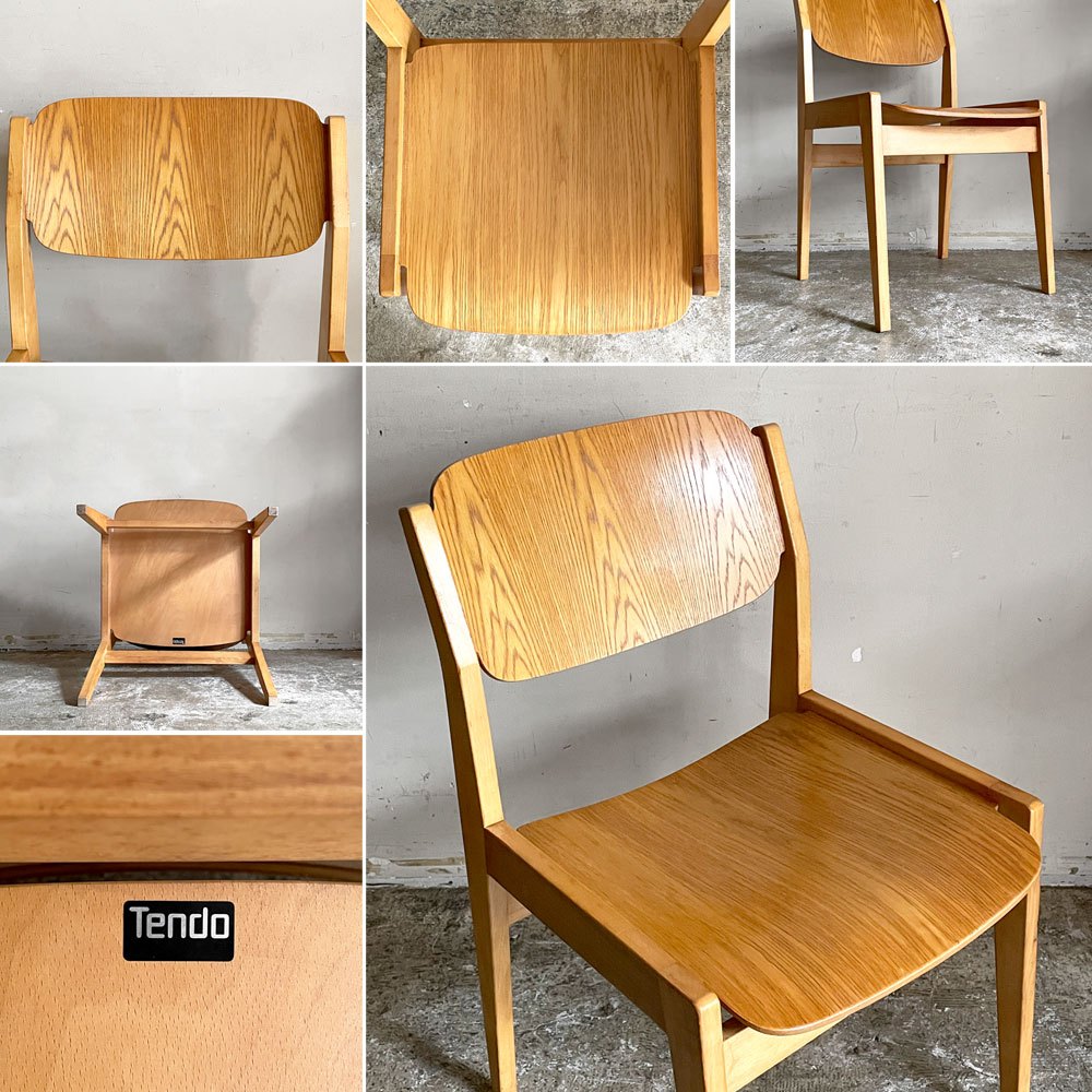 天童木工 TENDO ブックチェア ダイニングチェア 図書館椅子 オーク×ビーチ材 水之江忠臣 ジャパンビンテージ ミッドセンチュリー ■