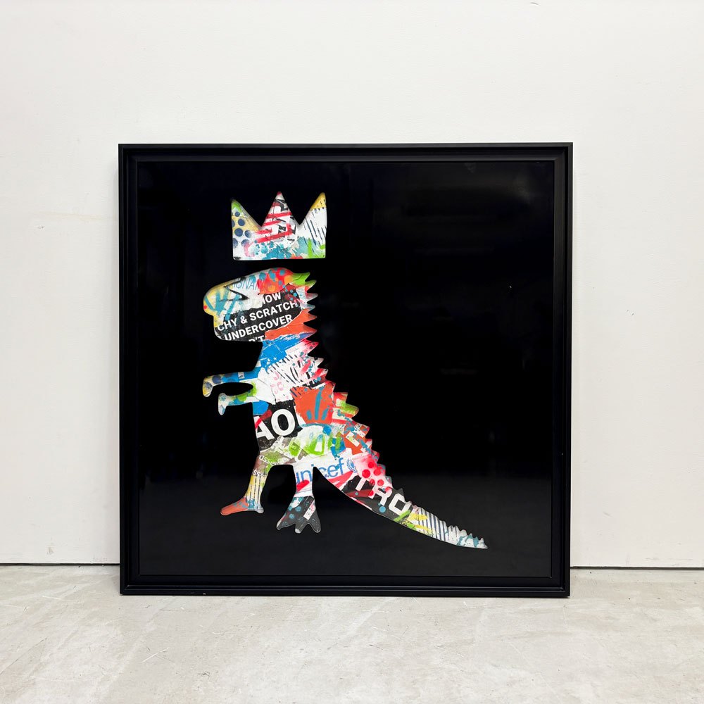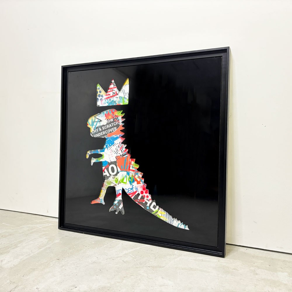 Aiiroh black Series Street Rex アートフレーム コラージュアート ミクストメディア グラフィティ 現代アーティスト ストリート 王冠 恐竜 バスキア風 フランス ●