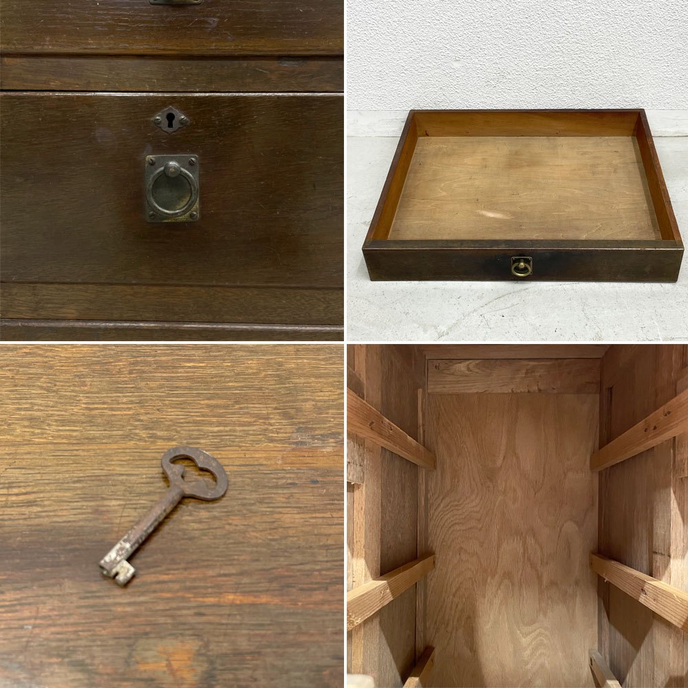 こちらはビンテージのお品物です。擦れや傷、汚れ、黒染み、僅かなペイントロス、木部のひび割れが見受けられるとともに抽斗内部には赤の塗装汚れがございます。また、構造上ガタツキが生じておりますが、フェルトなどを貼っていただく事解消可能な程度となっております。やや使用感はございますがビンテージの風合いとしてこれからもお楽しみいただける1台です。