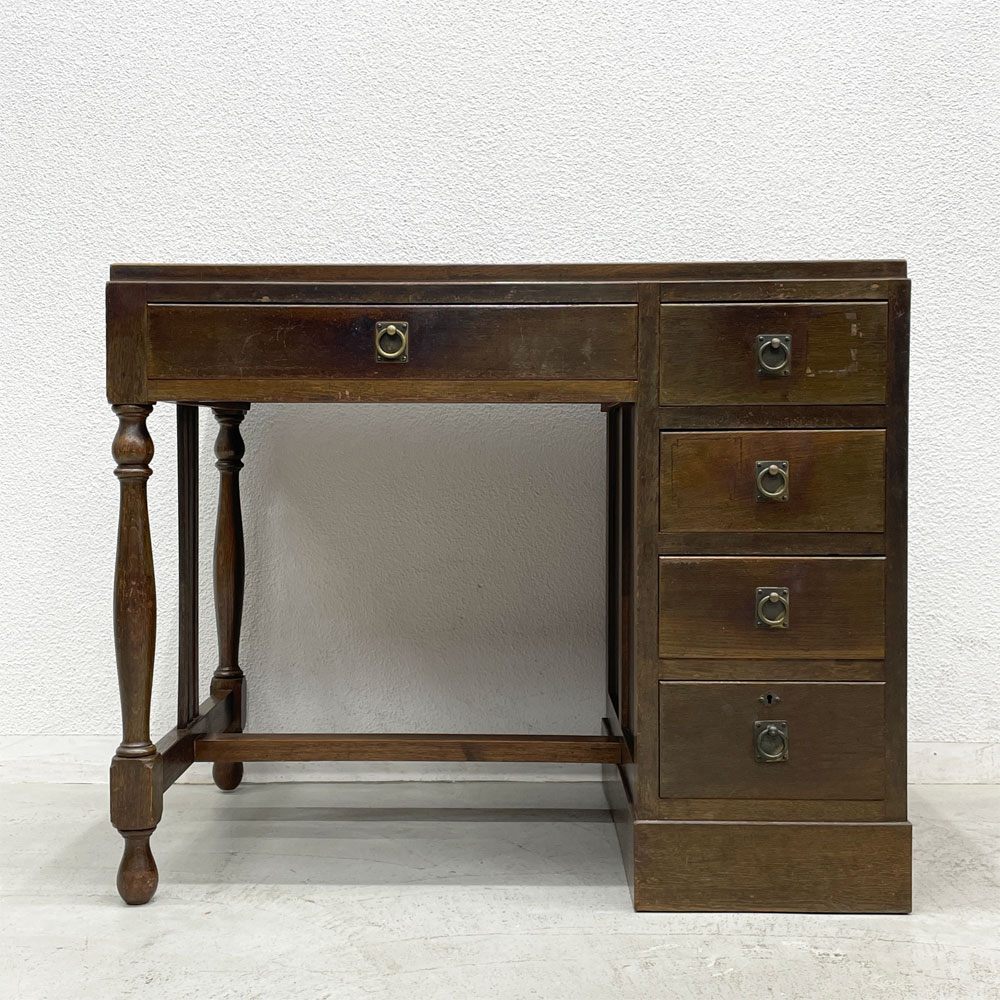 ジャパンビンテージ Japan Vintage 古い木味の片袖机 デスク 抽斗5杯 古家具 レトロ 〓