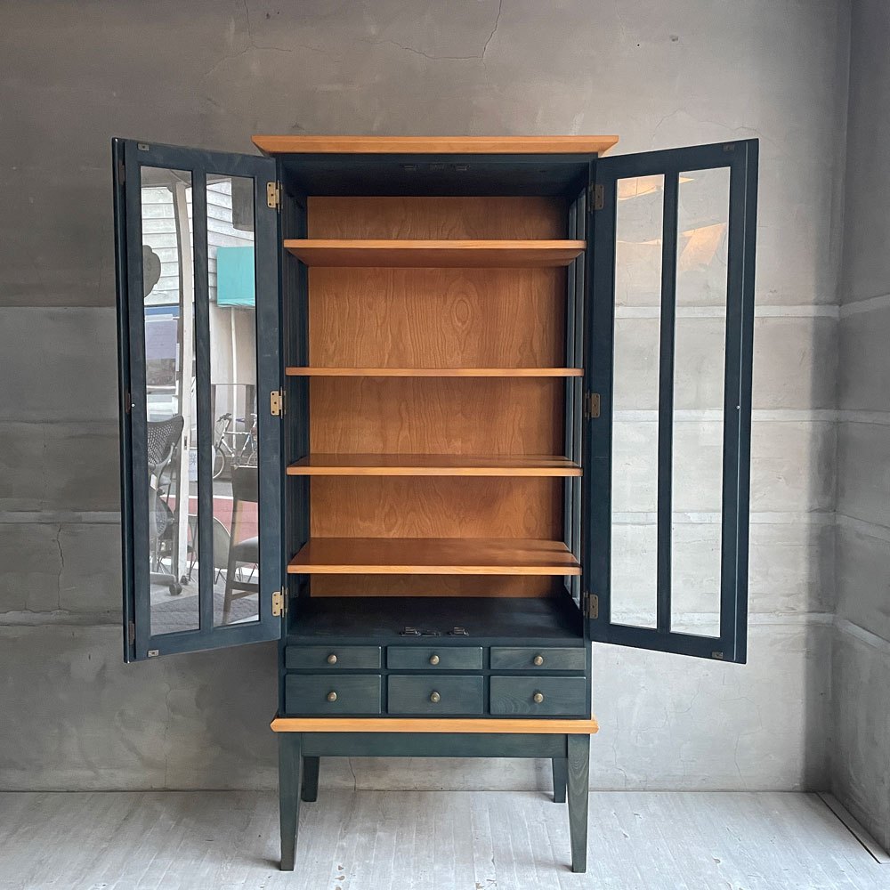 柏木工 KASHIWA ガラスキャビネット カップボード ブックシェルフ 飾り棚 本棚 ビーチ材 2トーンカラー IDC大塚取扱い ♪