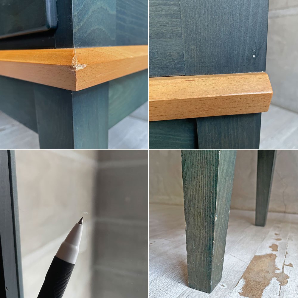 使用に伴う傷や擦れ、色ムラやペイントロス、軽微な汚れや塗装膜のくすみ、天板に染み汚れが見受けられますが、大きく美観を損なうようなダメージなども無く、ご使用に問題のある箇所などもございません。USED品として概ね良好なコンディションを保っております。