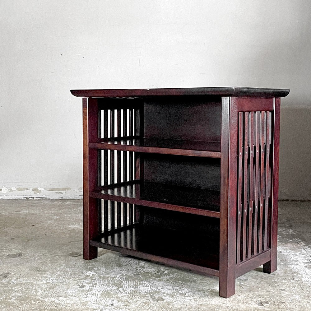 九州民芸家具 縦格子小棚 3段 飾り棚 陳列棚 ディスプレイラック ミズメザクラ無垢材 和家具 民芸 和モダン 店舗什器 ■