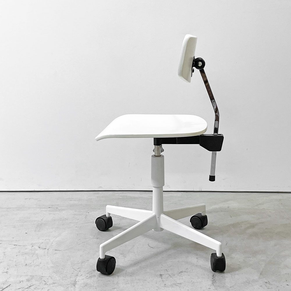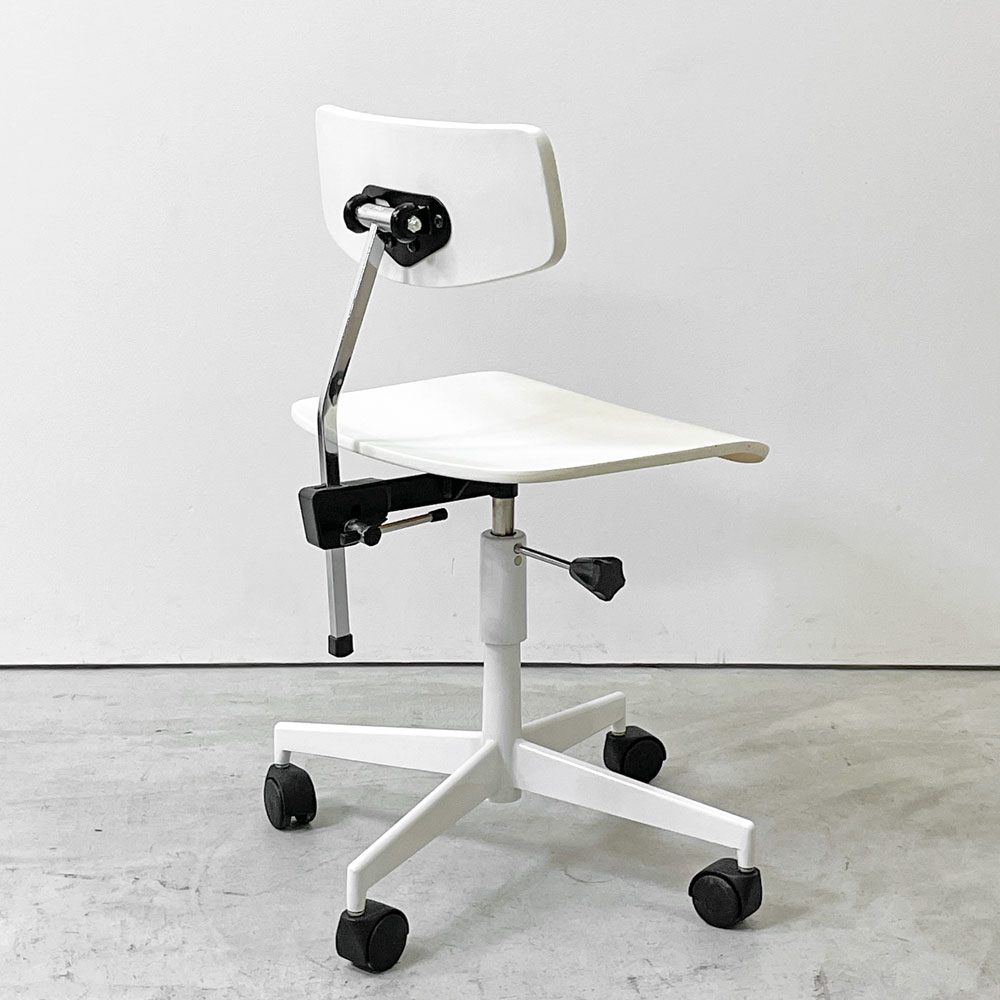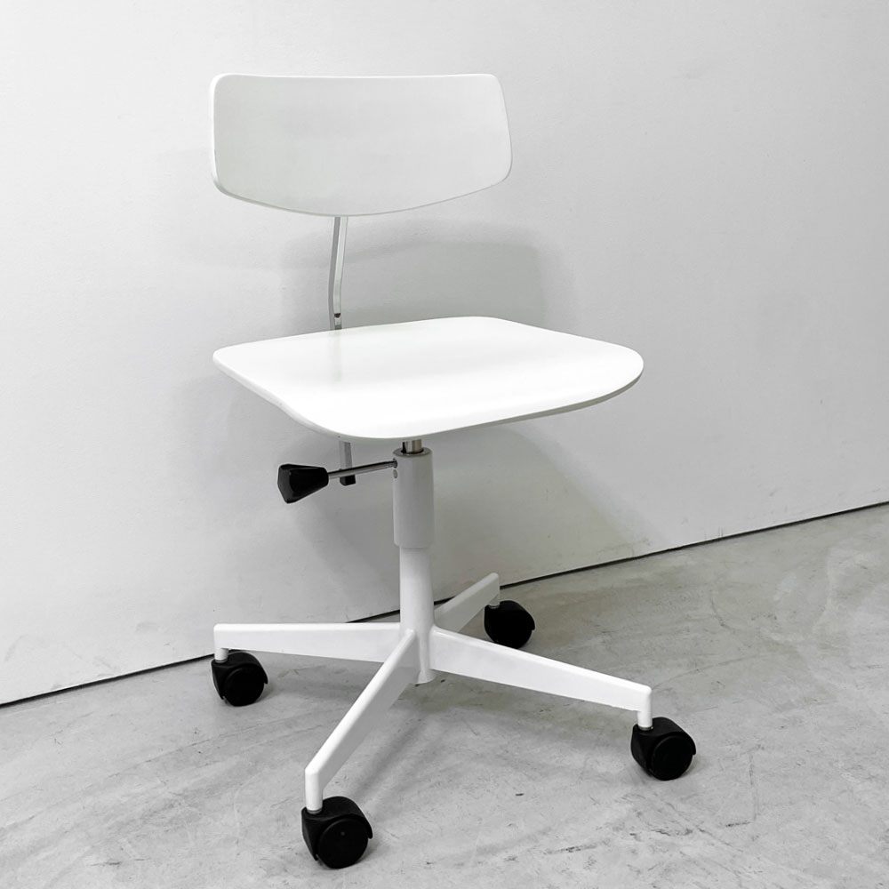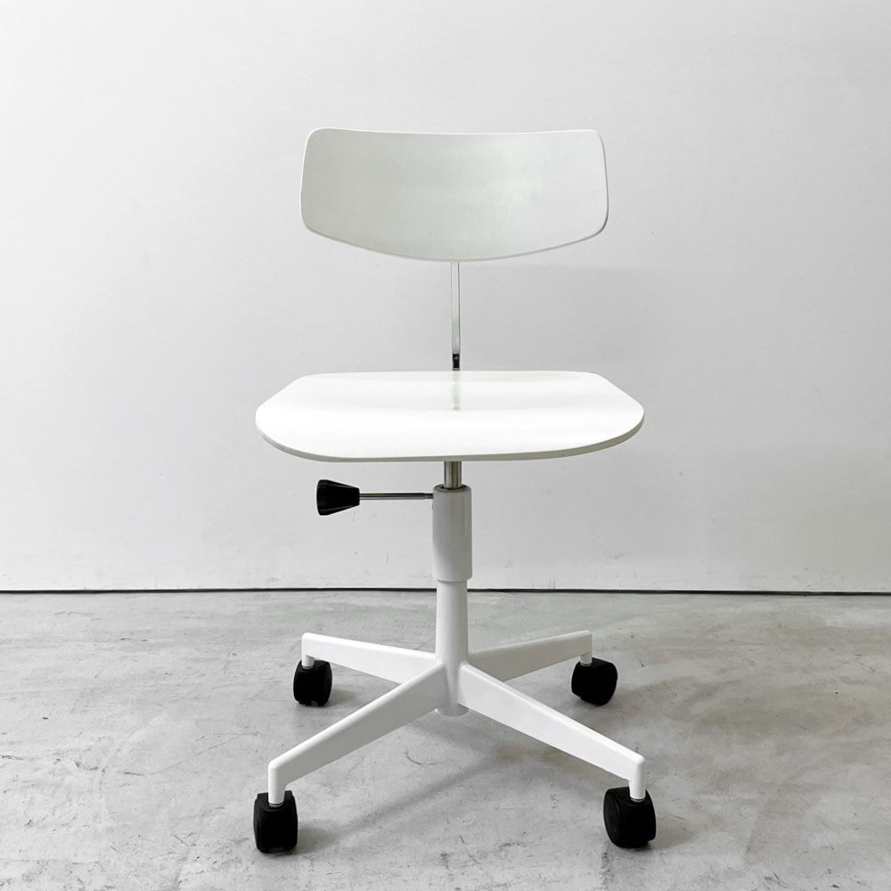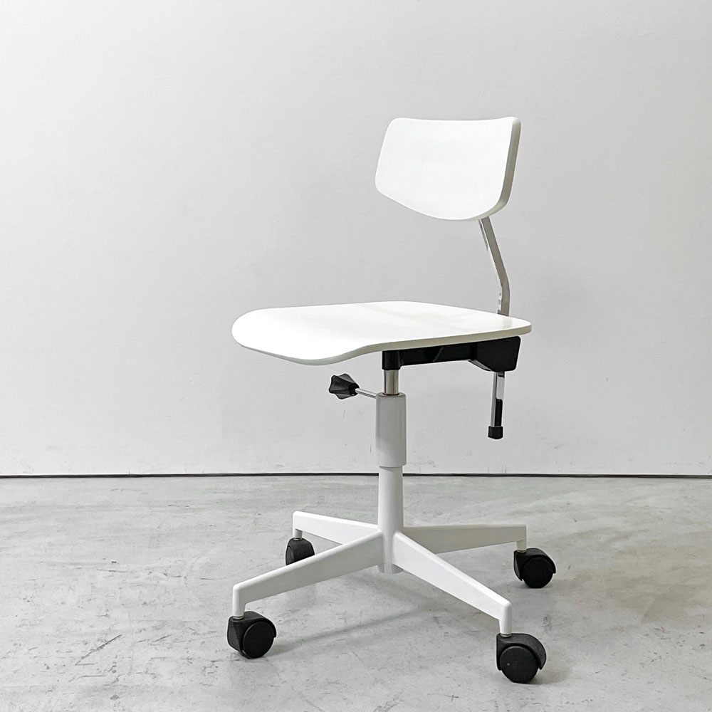 そのKEVIチェアを踏襲するように、プライウッドによる軽快なシート、様々な方位へ移動を可能にしたダブルホイール、そして背もたれと高さはネジ固定によるアナログタイプと多くのディティールに共通点が見受けられます。