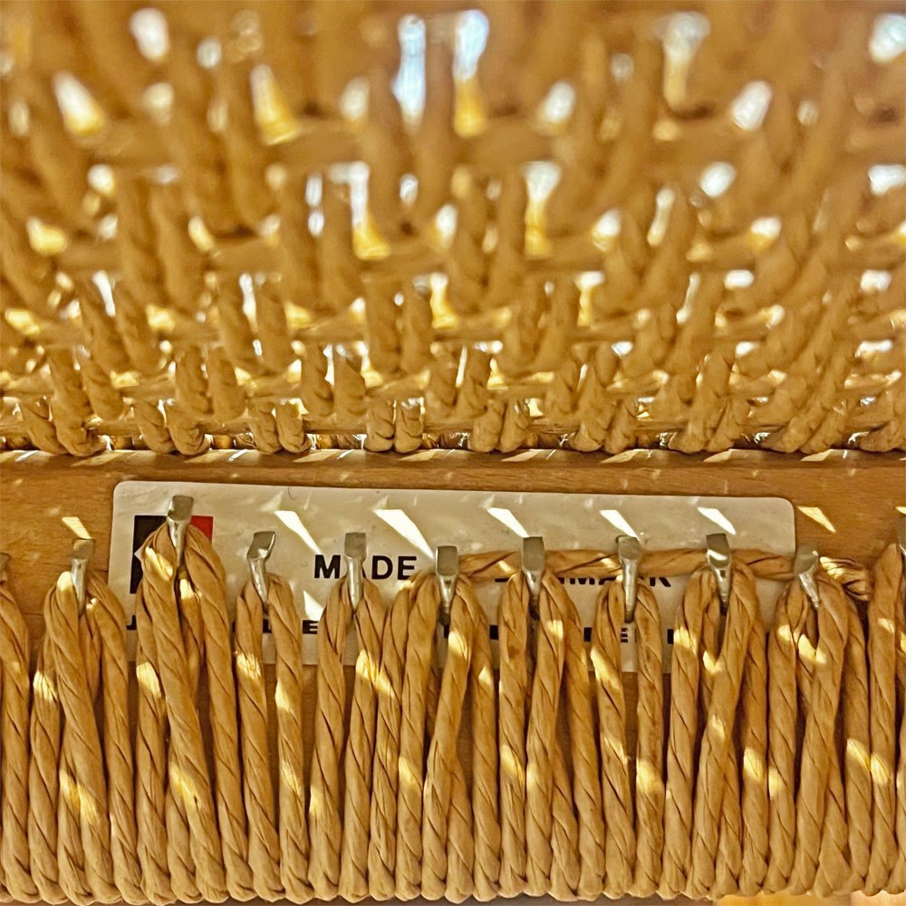 フレームには、素晴らしい木色と艶のチーク材を。座面には丁寧に張られたペーパーコードと、それぞれの素材の良さを最大限に引き出しています。