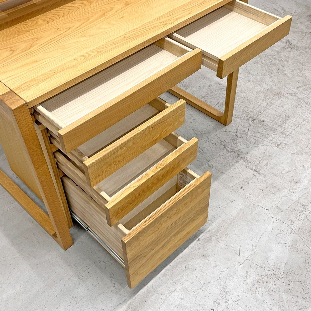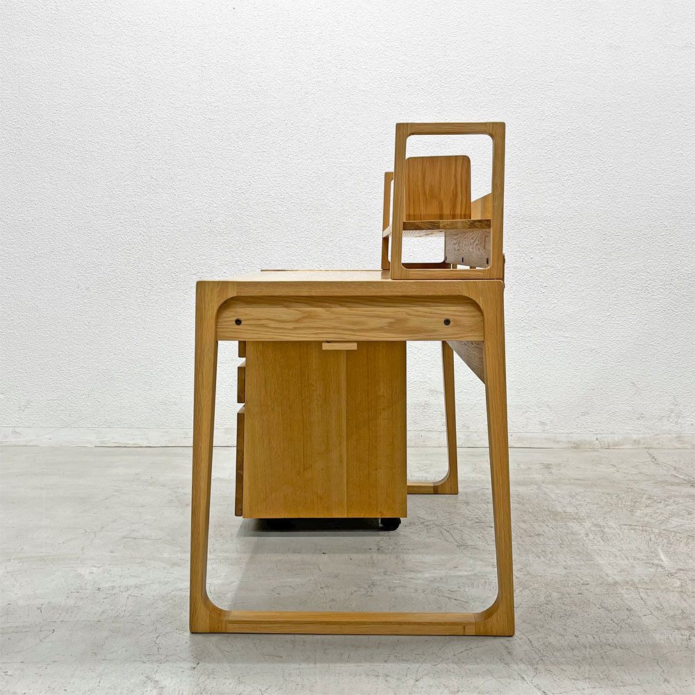 同社のデスクの中でも一番の広さを誇る天板サイズと良質なオーク材を用いたロングライフデザインがコンセプトのプロダクト。