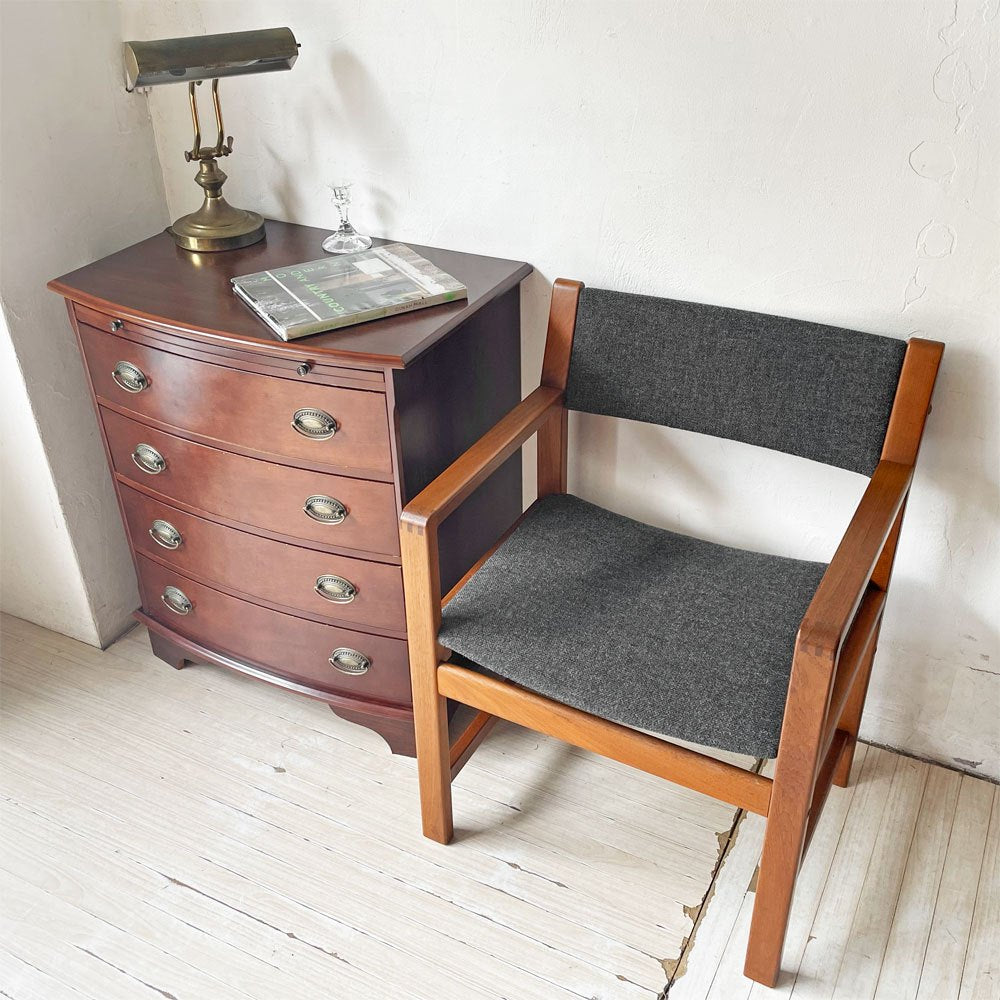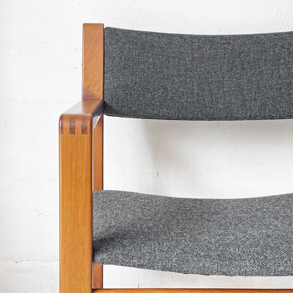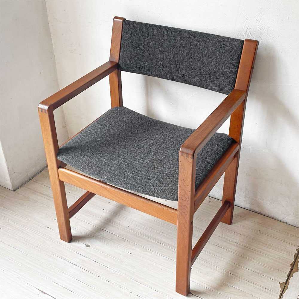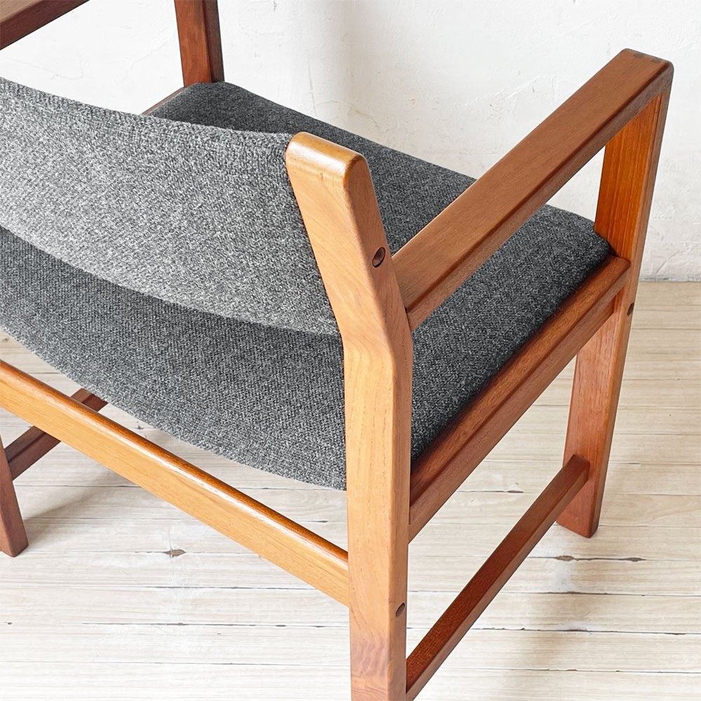 程よく経年したチーク材とグレーカラーファブリックのコントラストがマッチしたチェアです。