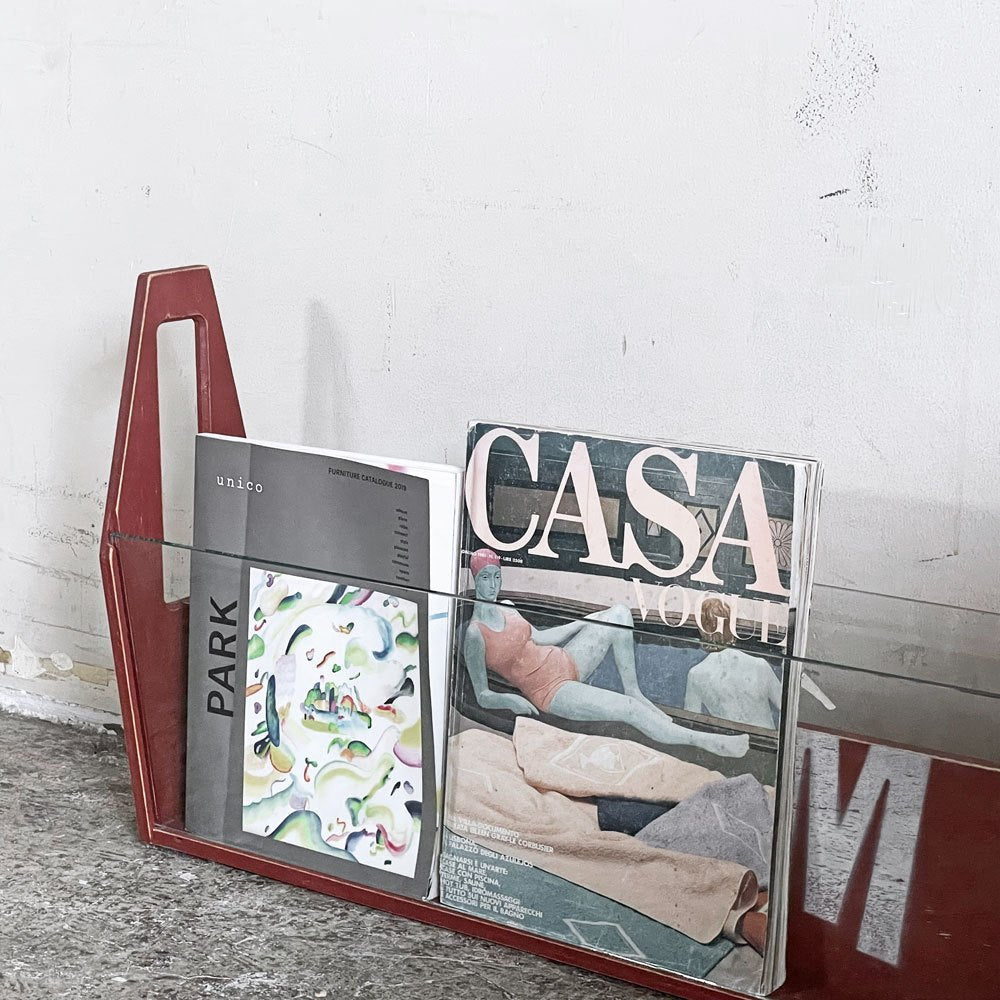 エムアンドエムファニチャー M&M FURNITURE マガジンラック 強化ガラス W85.5cm インダストリアル 店舗什器 廃番 ■